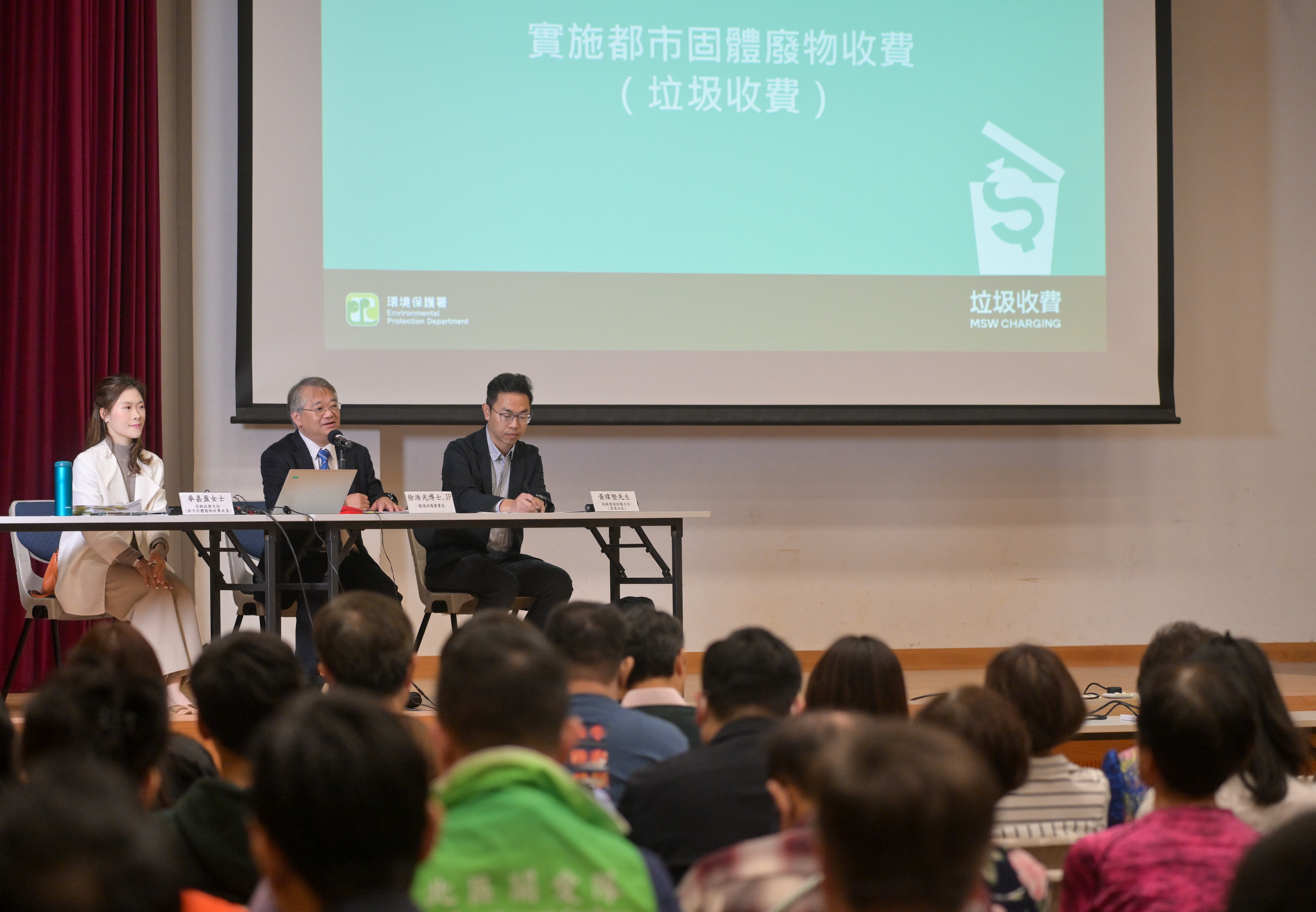 環保署今日(2月20日)在禮頓山社區會堂為關愛隊舉辦首場都市固體廢物收費簡介會。在簡介會上,環保署署長徐浩光向關愛隊成員講解垃圾收費的最新推行安排,以及實施第一階段管制即棄膠餐具和其他塑膠產品的細節。