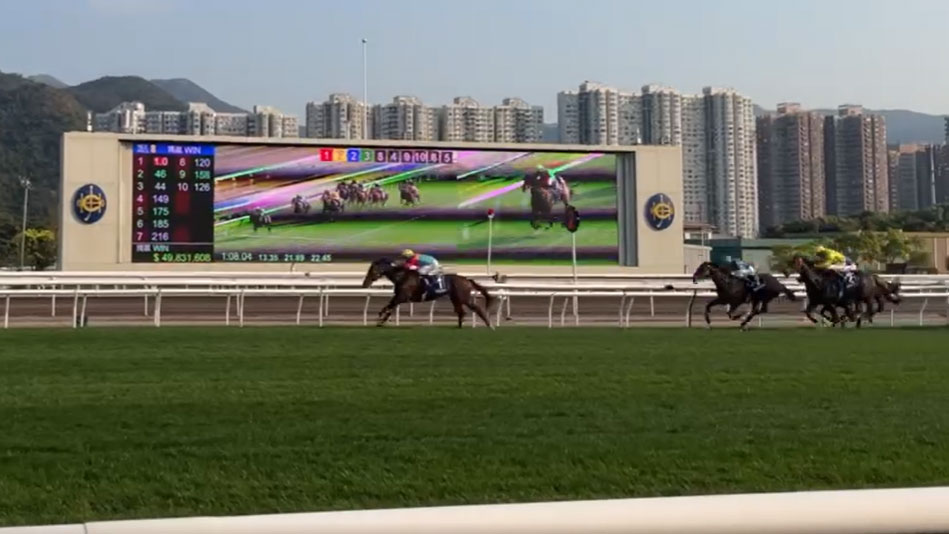 一如所料,由大衛希斯訓練、潘頓策騎的「嘉應高昇」,被捧成1.05倍的頂頭大熱門,一起步就僅隨放頭馬「合夥奔馳」,入直路一攻而破,拋離群駒輕勝3個半馬位贏馬,時間為1:19.36,為沙田馬場1400米的紀錄時間。