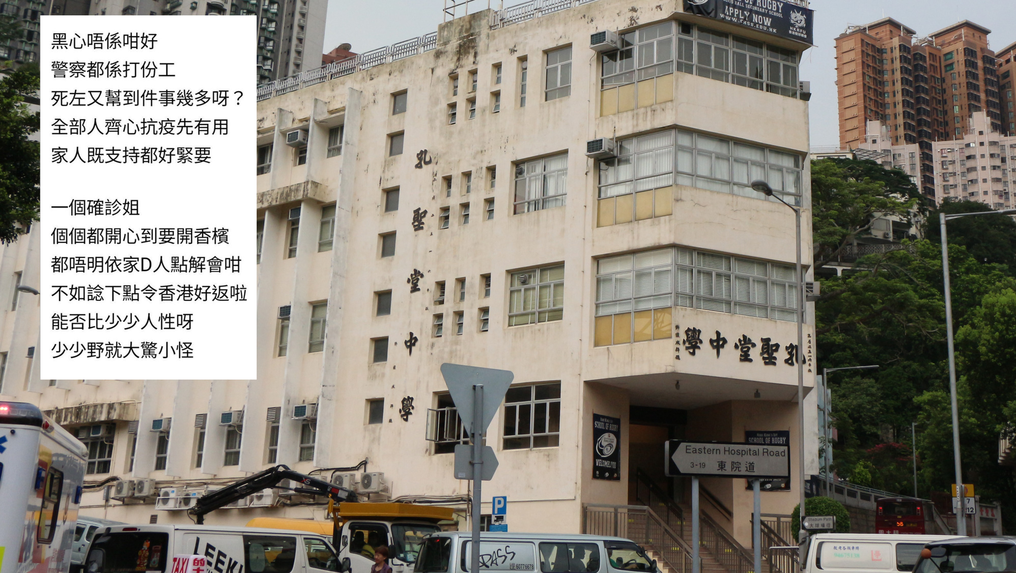近日,一名警員確診武漢肺炎,何栢欣在網上貼文提及此事,指「黑心唔係咁好」、「個個都開心到要開香檳,都唔明依家D人點解會咁」,但就被藍絲指是「藏頭詩」,單看每句第一字就是「黑警死全家,一個都不能少」。