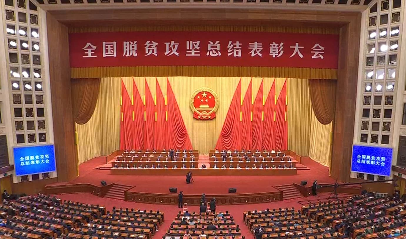 中國全國政協主席汪洋致辭時表示,經過8年持續奮鬥,中國的脫貧攻堅取得全面勝利,現行標準下近1億農村貧困人口全部脫貧,貧困縣全部「摘帽」,困擾中華民族幾千年的絕對貧困問題得到歷史性解決。