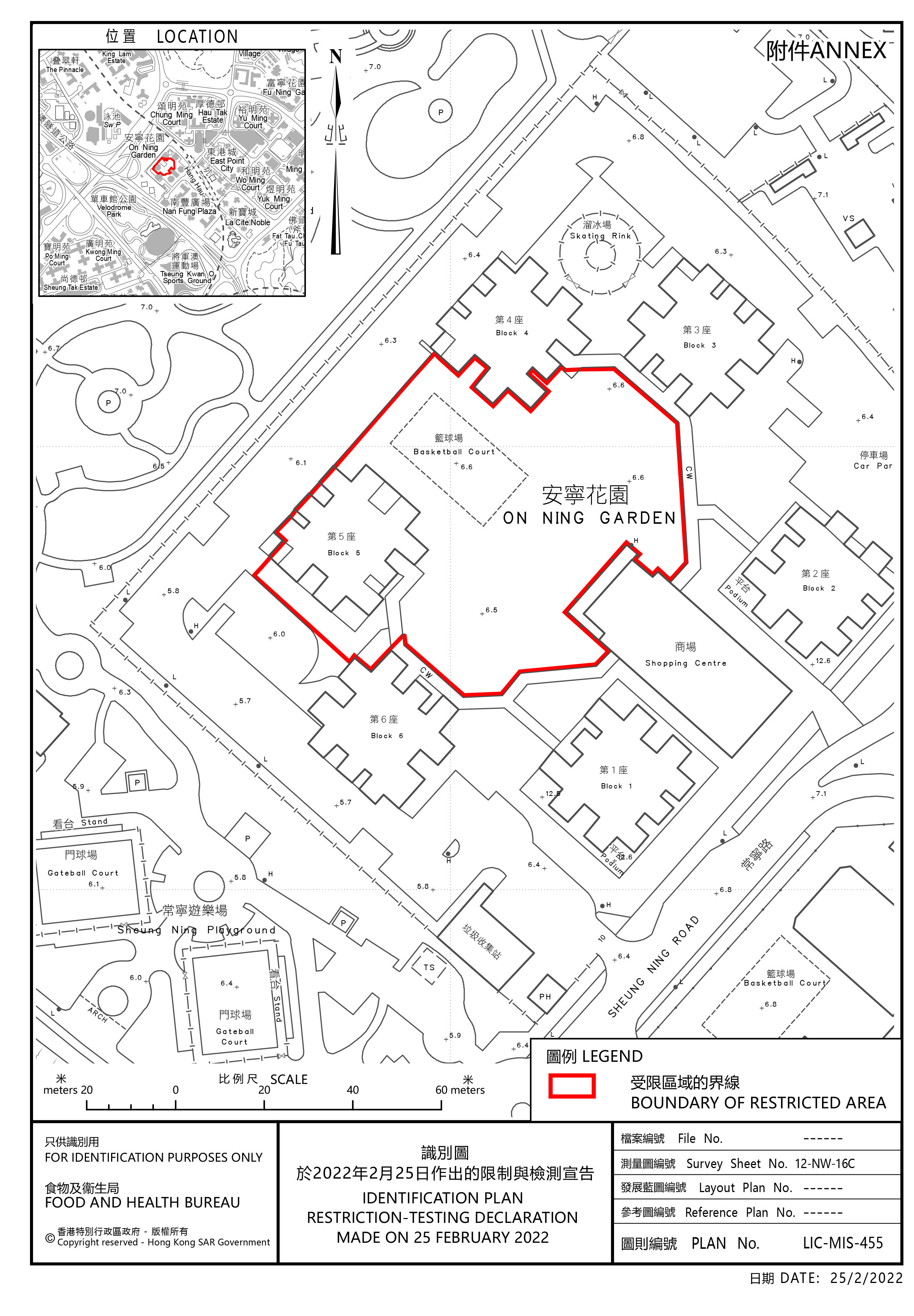 政府今日(2月25日)引用《預防及控制疾病(對若干人士強制檢測)規例》(第599J章),作出限制與檢測宣告,自晚上7時起限制在將軍澳指明「受限區域」,即將軍澳常寧路10號安寧花園第5座內的人士,須留在其處所並接受強制檢測。受檢人士須在其處所等候,直至「受限區域」內所有已識別的受檢人士完成檢測,而相關檢測結果亦已獲大致確定,方可離開其處所。政府目標是在明日(2月26日)下午約5時完成此行動,視乎檢測結果,行動或會延長。