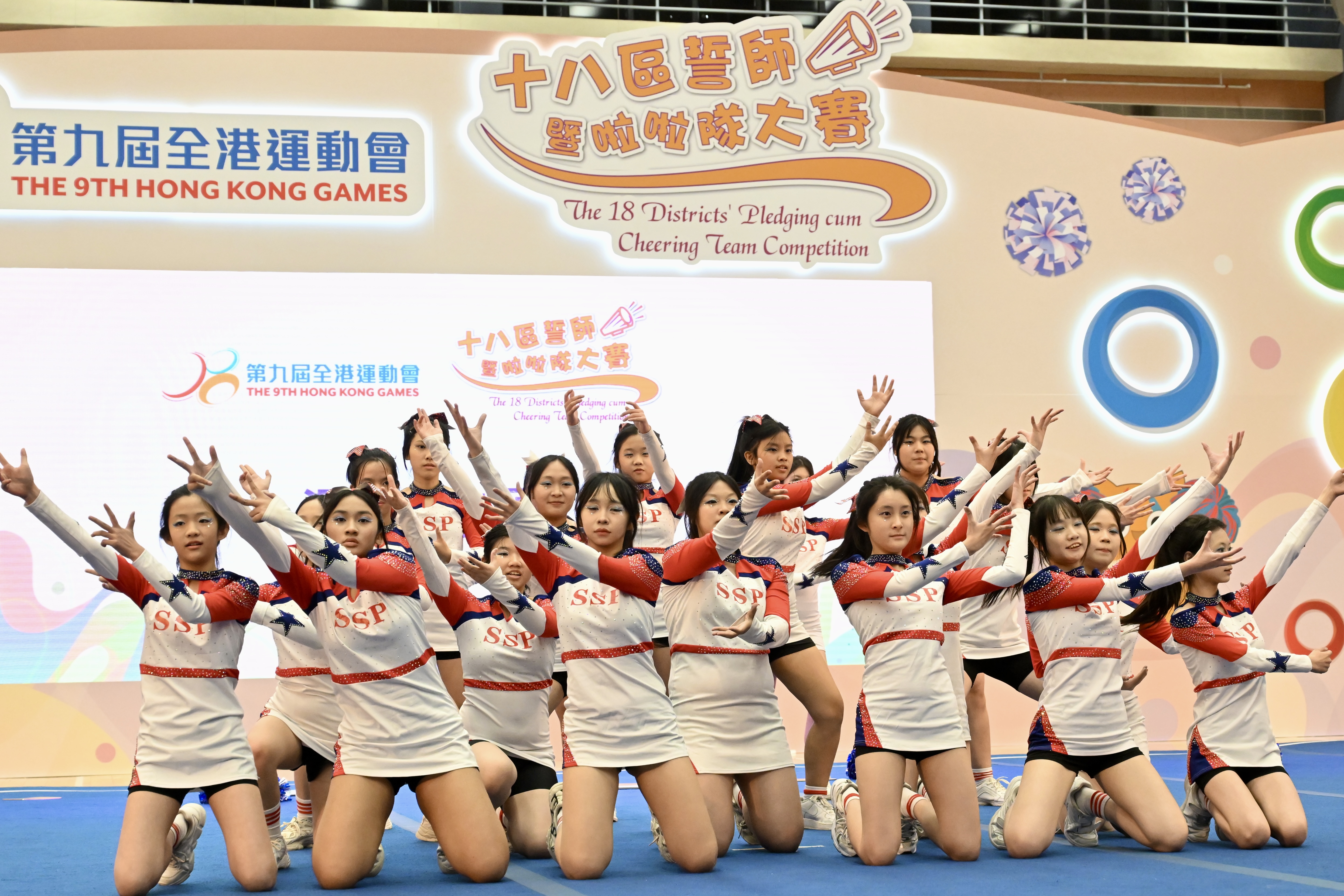 第九屆全港運動會今日(2月25日)在中山紀念公園體育館舉行十八區誓師暨啦啦隊大賽,宣告來自十八區的參賽運動員已準備就緒,全力以赴爭取佳績;啦啦隊大賽旨在鼓勵市民積極支持各區運動員參與港運會賽事,為港運會增添歡樂氣氛,同時展現地區特色和活力,推廣體育文化。