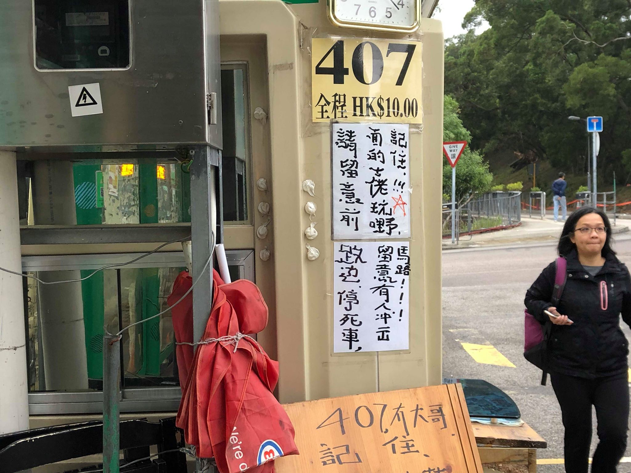 今早有407號專線小巴司機發現停泊在寮肚路站頭的小巴,遭交通警票控違例停泊,引起大批司機不滿,引致司機集體罷駛。
