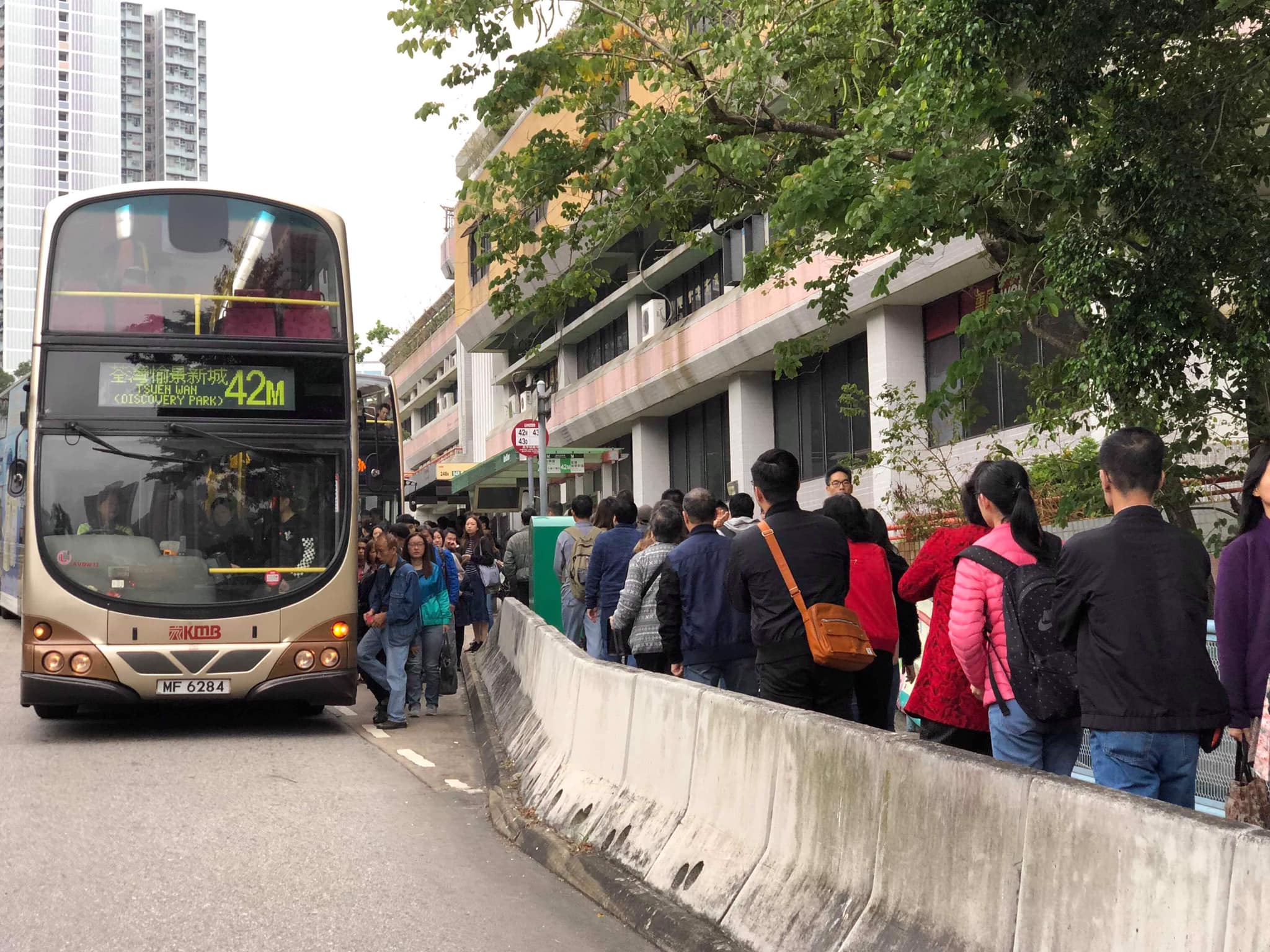 運輸署表示,由於司機罷工,長宏站出口受阻,車龍已排至楓樹窩路,長宏總站各線需要暫時改為長亨總站。