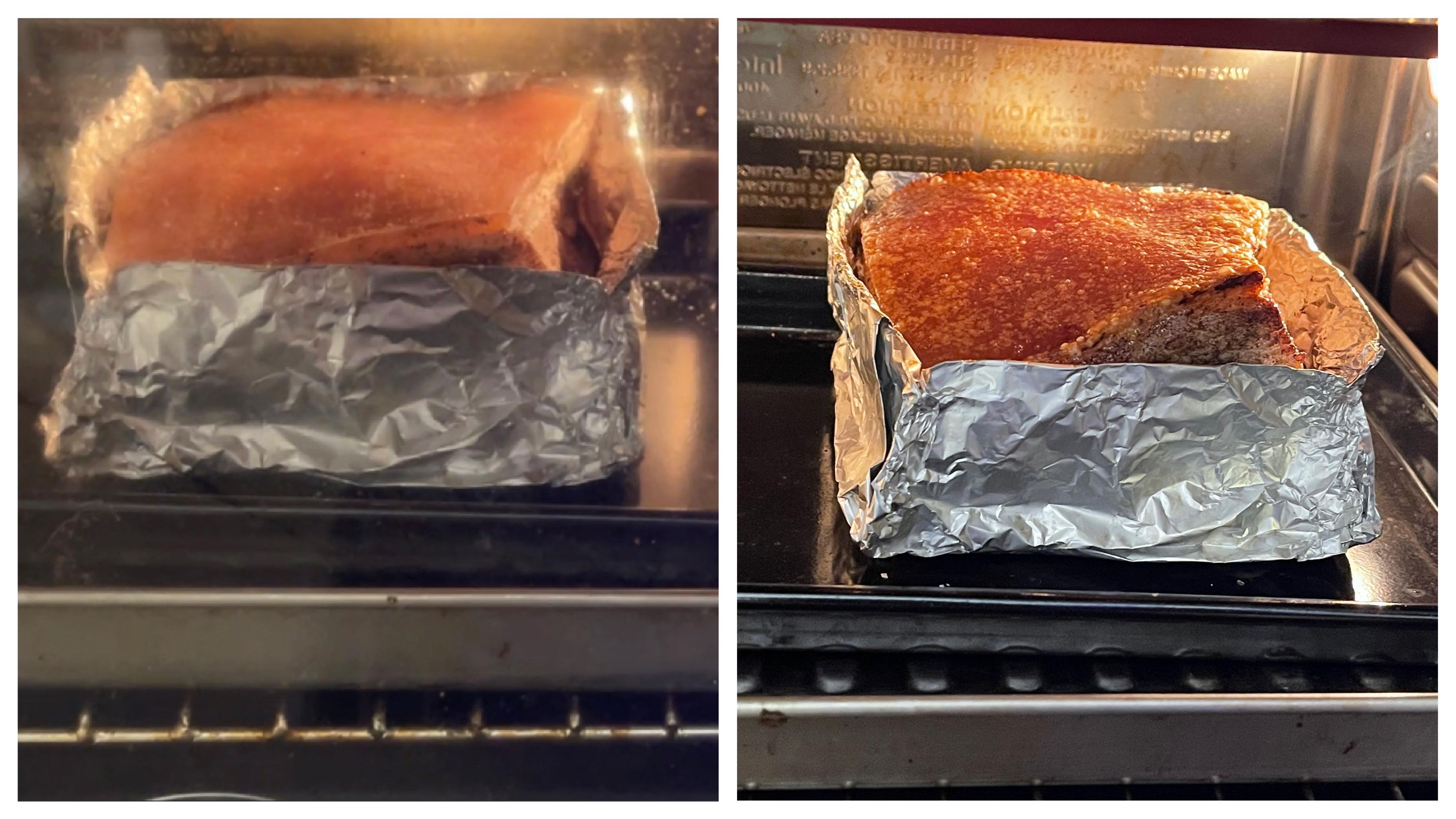 *因為用高溫焗,所以用兩層盤可以避免豬用底部燒燶,蒸焗或加水可以使肉不乾,保留肉汁