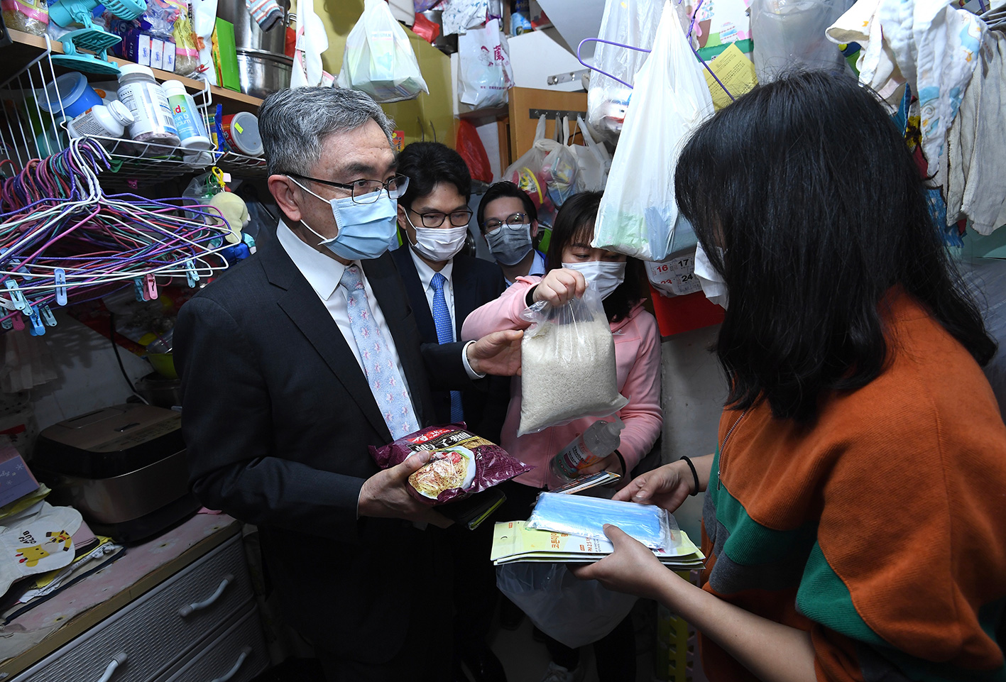 劉怡翔隨後到深水埗區,與新家園協會代表一同探訪區內新來港家庭,表達關懷。除了向他們送贈防疫包和口罩,他亦呼籲他們配合政府各項防疫工作,盡量留在家中,減少社交活動,同心抗疫。