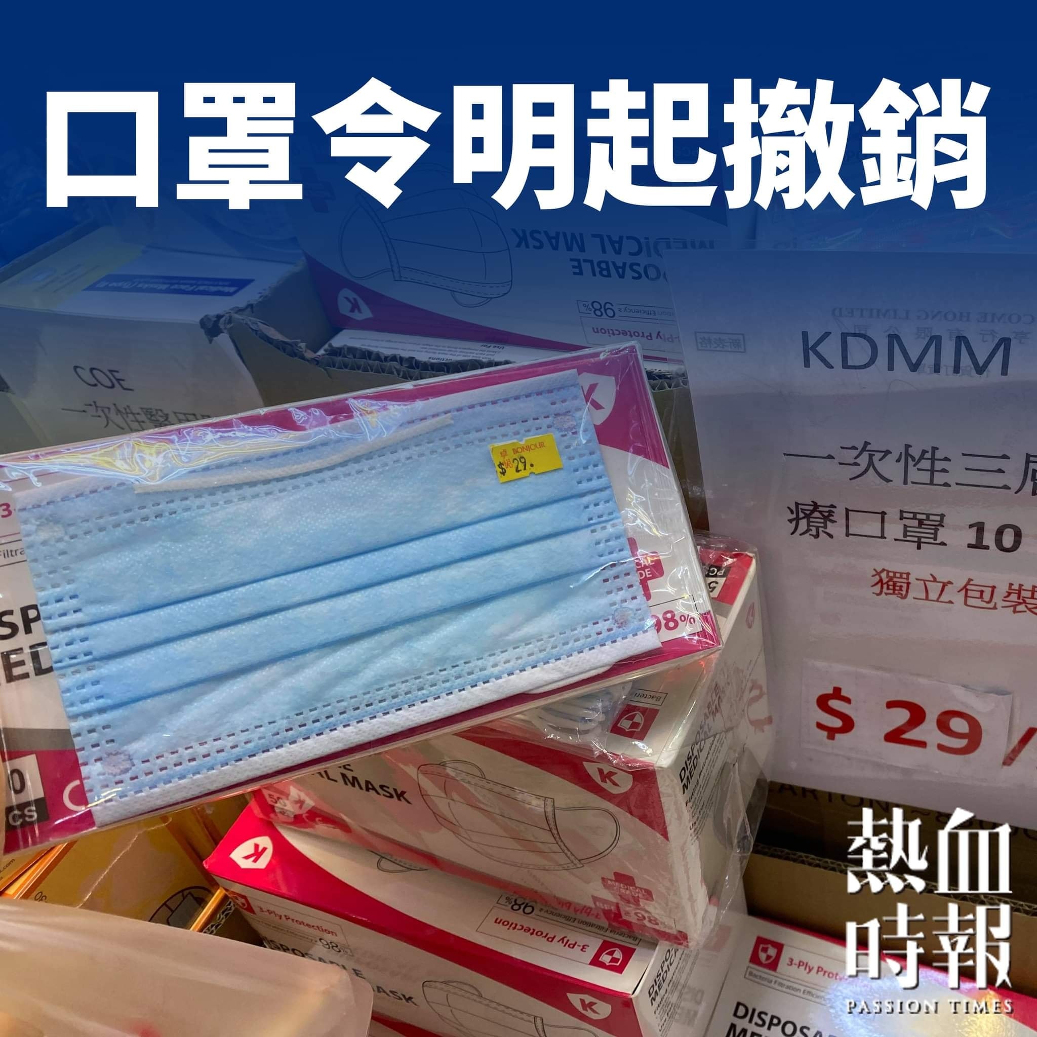 特首李家超今早(2月28日)於行會前見記者,宣布由明日(3月1日)開始全面撤銷口罩令,範圍涵蓋室內、戶外及公共交通工具。