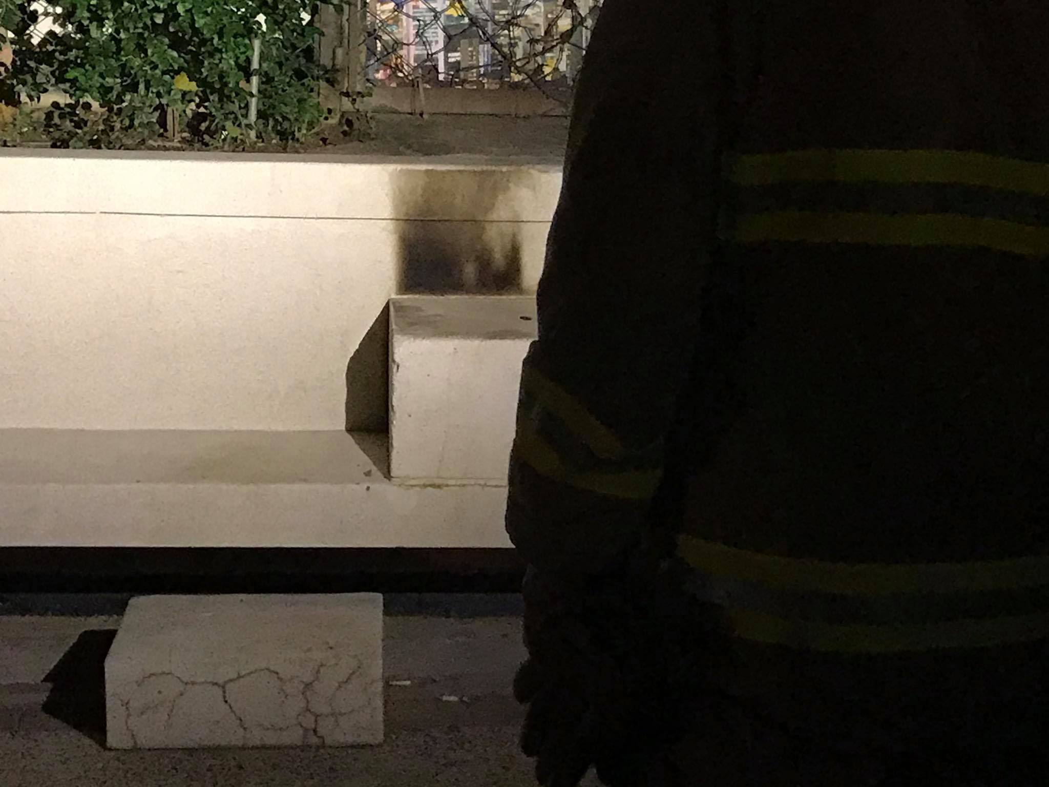 到晚上10時許,有人向診所後方的花槽擲懷疑汽油彈,有花糟雜草起火,消防接報到場處理。
