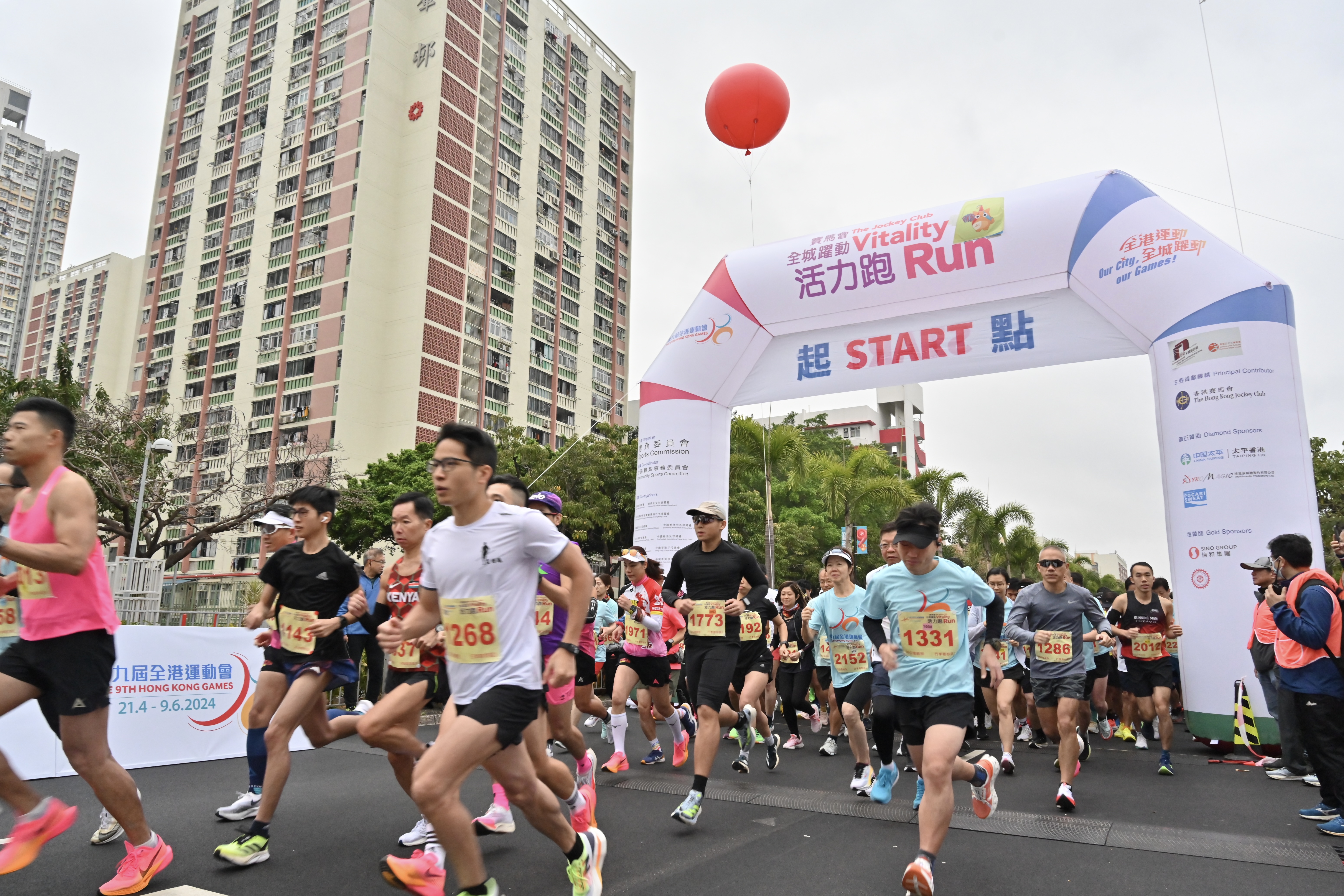 「第九屆全港運動會──賽馬會全城躍動活力跑」今日(3月3日)上午在沙田城門河畔舉行,逾5000名市民參與活動。