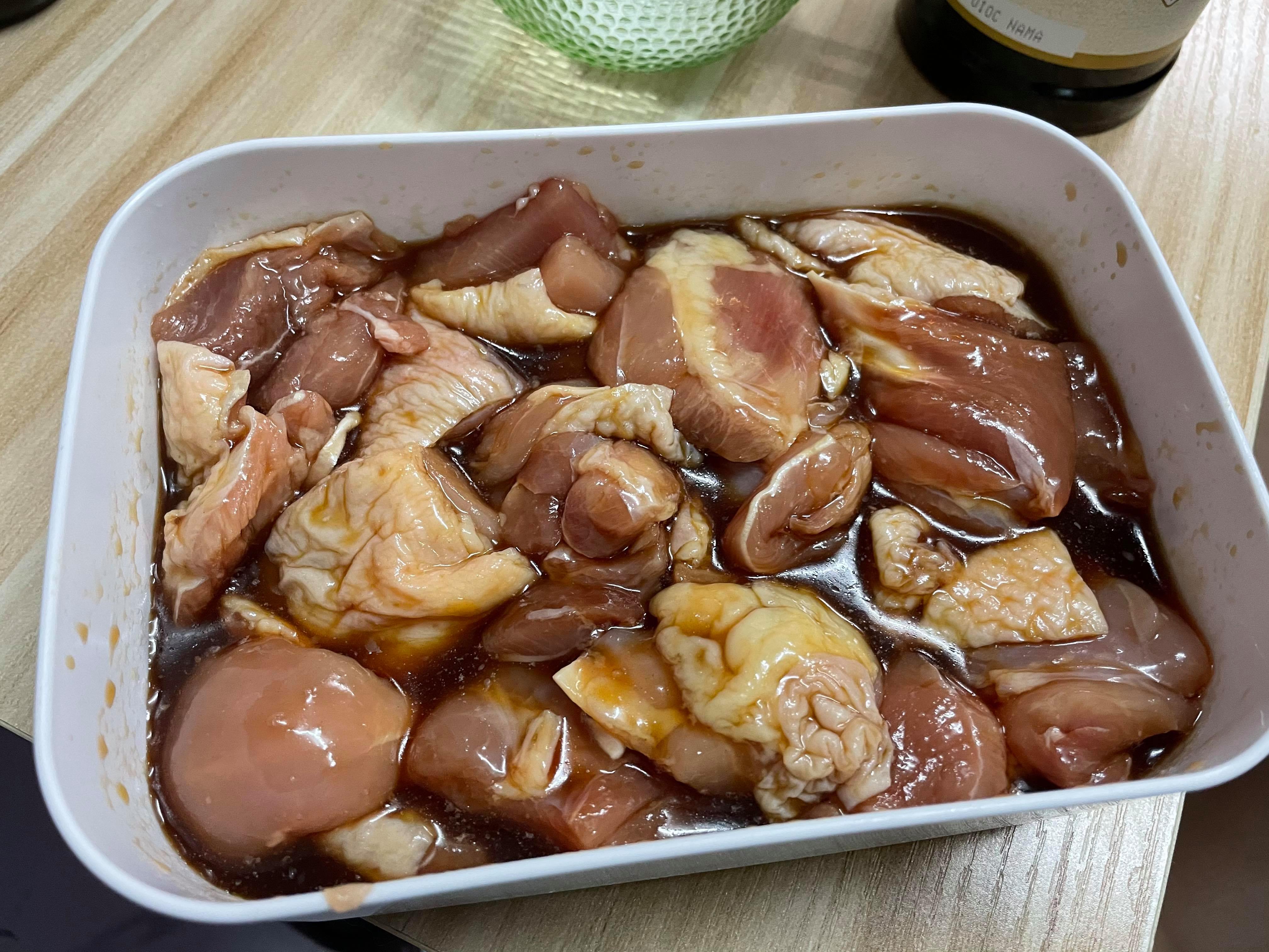 3. 將雞扒放入調好味的醃料,撈匀後包上保鮮紙,放入雪櫃醃一晚入味。