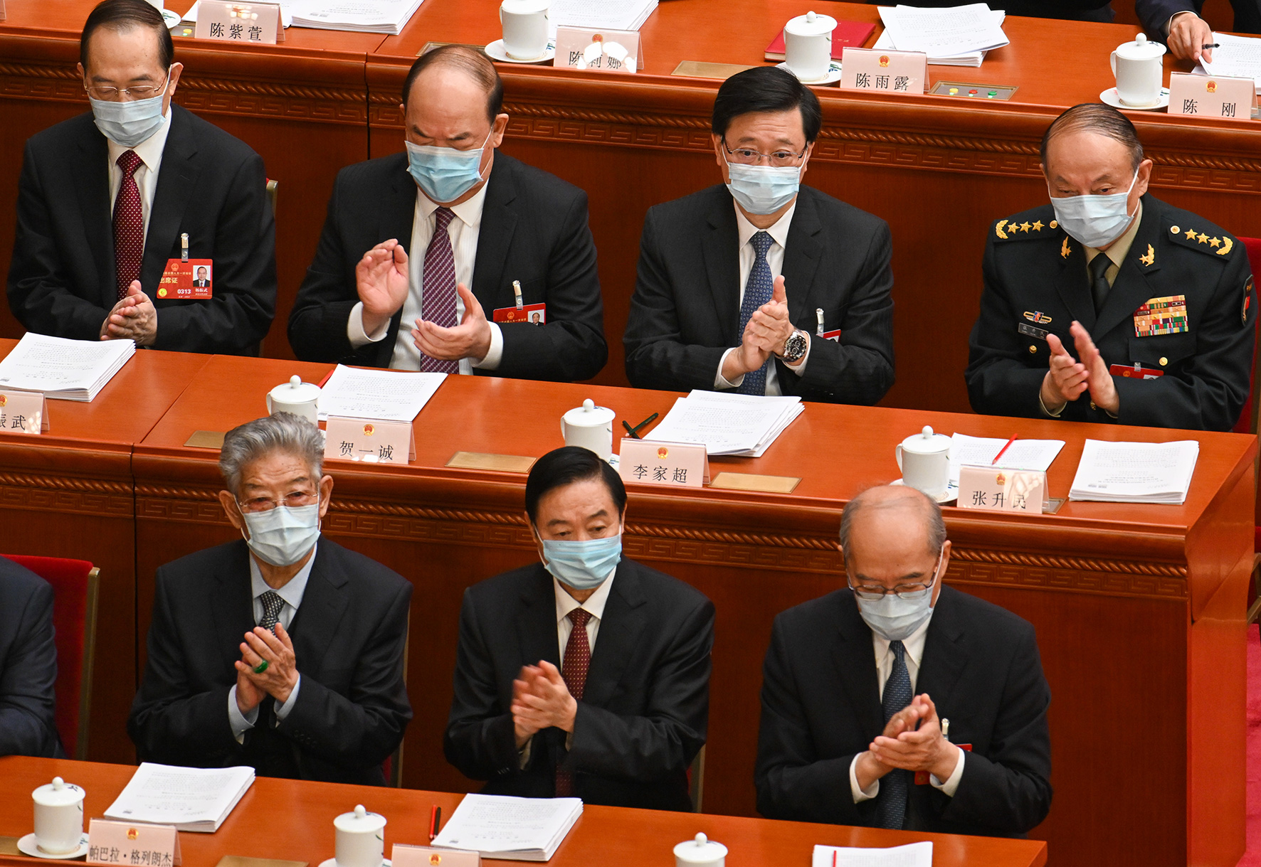 會議結束時,國家主席習近平行經列席會議的李家超附近,並主動向李家超揮手打招呼,李家超作揖回應。