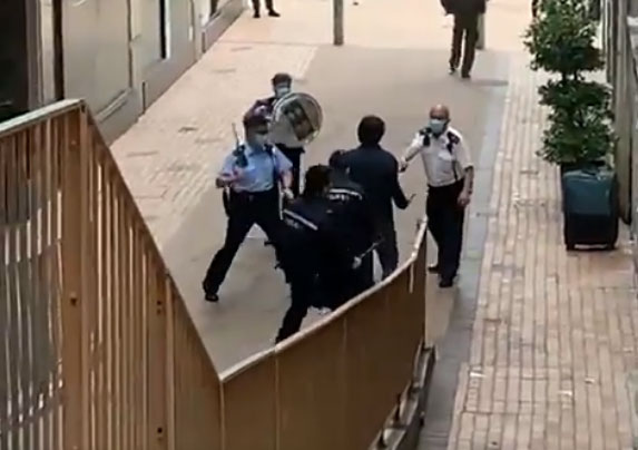 網上流傳短片,見到一名懷疑持械男子,於橫巷被5名警員包圍,警員揮棍將他制伏。