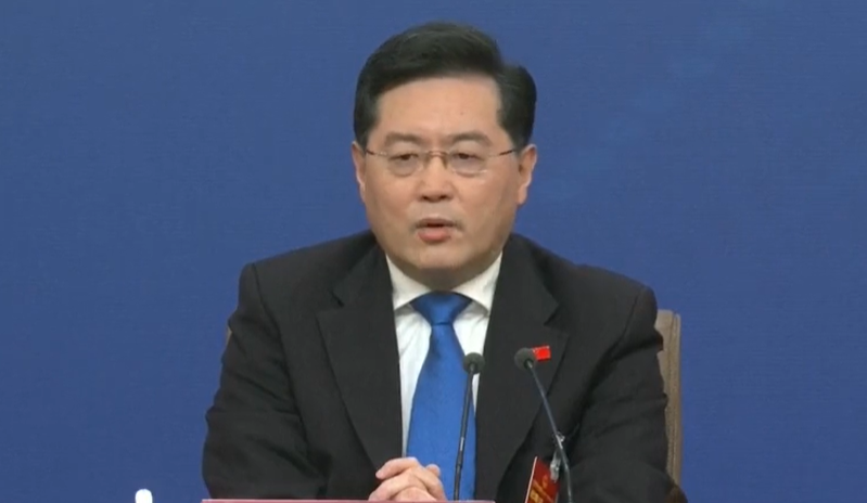 秦剛早上出席兩會期間的記者會,回答記者提問,指美方所謂的「競爭」,是全方位的遏制、打壓,是你死我活的零和博弈。