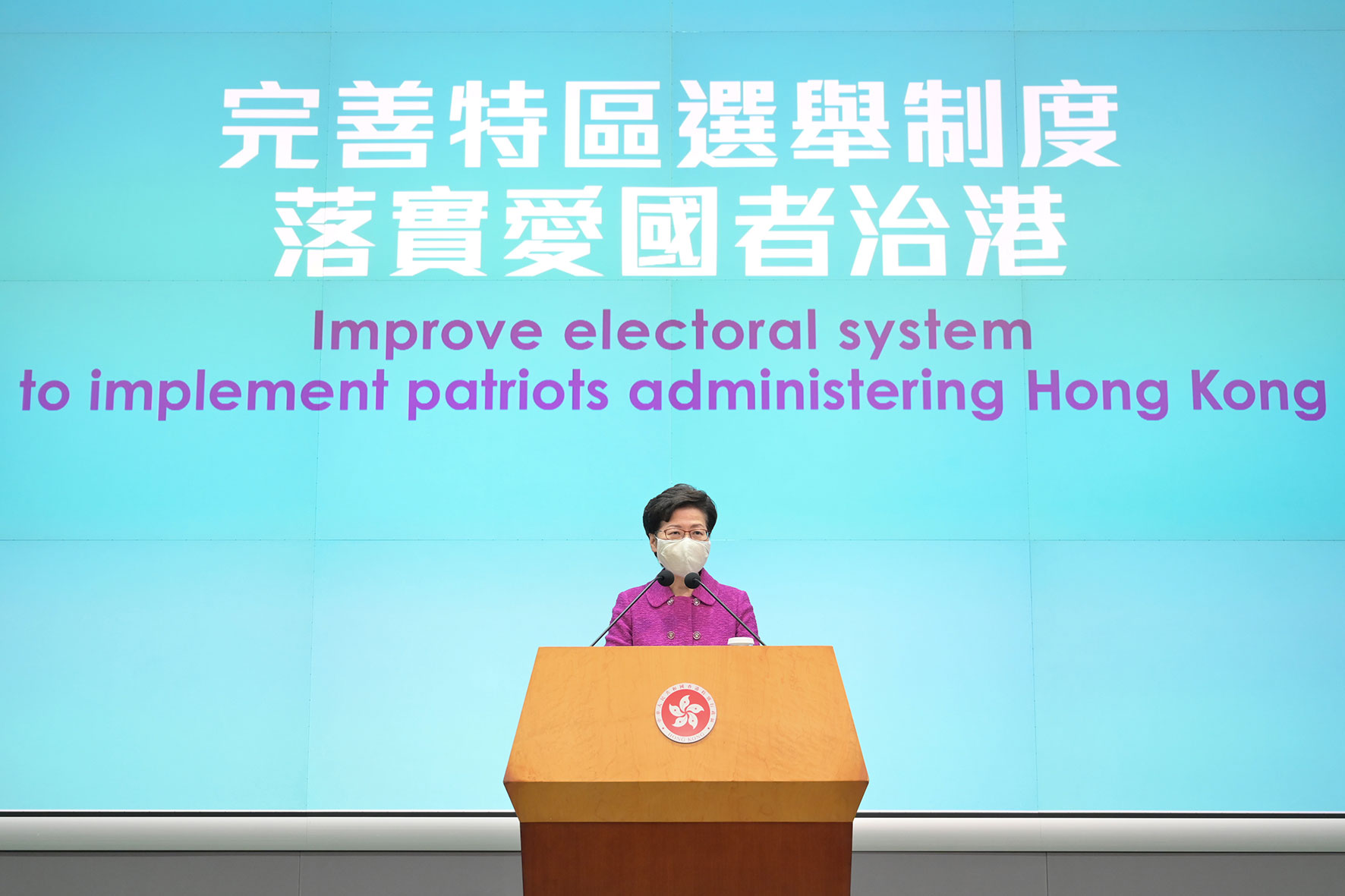 林鄭表示,為確保香港管治權掌握在愛港者手上,她非常歡迎今次工作,特區會全力配合。她形容過去幾年,立法會的亂象,令施政舉步維艱,選舉制度有漏洞及有缺憾,特區政府難以自行處理,她感謝中央繼去年的港區國安法後,從憲制層面負起責任,為特區解困。她又重申,中央的主導權不容置疑。