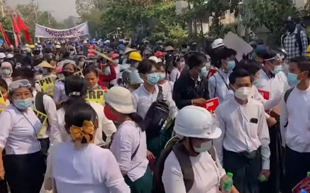 首頁港聞兩岸國際 緬甸反政府示威再多5人死亡 美方嘗試聯絡昂山素姬 作者:熱血編輯部 (陳五) 03-13-2021 Like Facebook Twitter 更多 Like107 分享0 留言0 緬甸反軍方示威未止,保安部隊以武力鎮壓,過去一日至少5人死亡。民眾今日(3月13日)響應號召上街,紀念1988年學運遇害的一名學生。有人權組織表示,自軍方上月1日發動政變以來,已經有超過70人在示威中喪生。美國國務院發言人普萊斯表示,華府正通過適當渠道,嘗試與被拘禁的緬甸國務資政昂山素姬接觸,並關注其他被拘禁的文人政府高層健康和安全。(網上片段截圖)