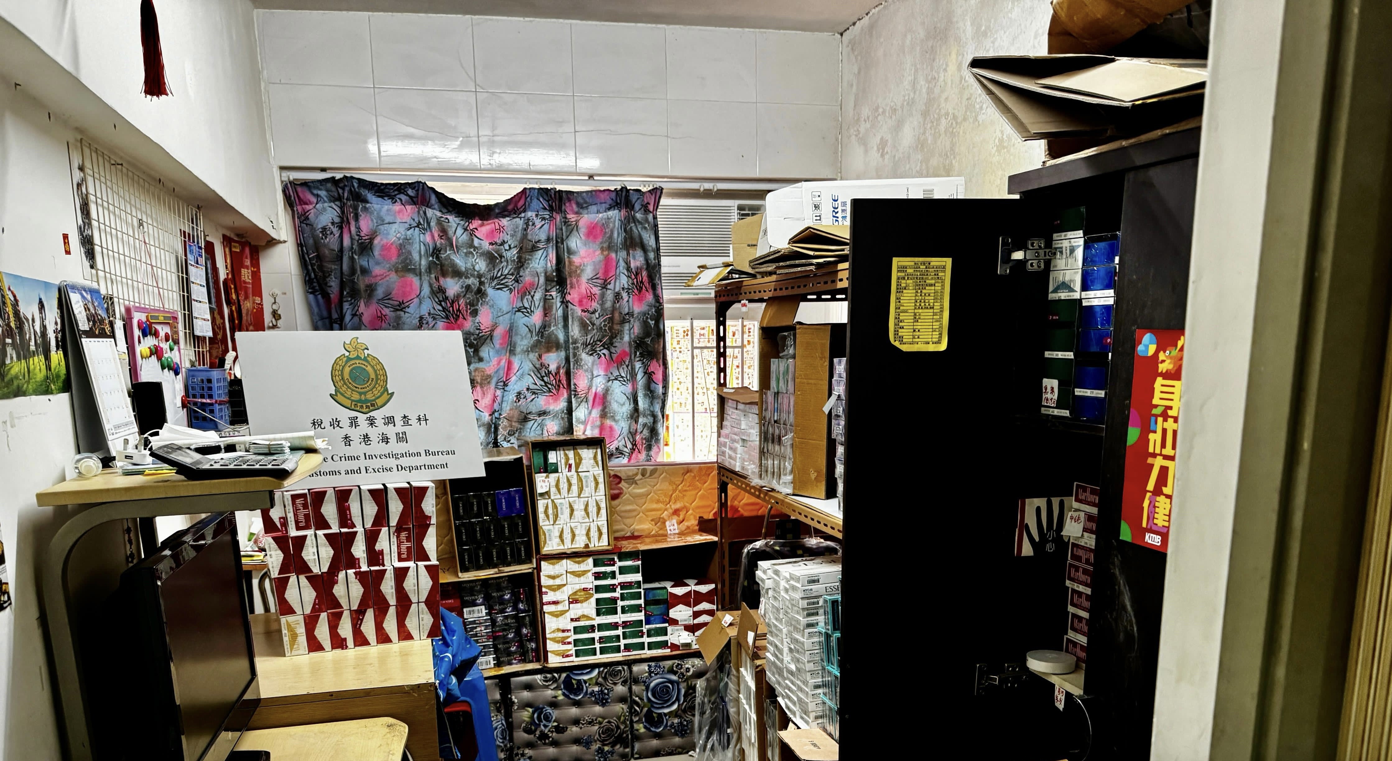 首宗案件中,海關人員今日上午在深水埗大南街一個分間單位內檢獲約4萬支懷疑私煙,並拘捕一名89歲報稱無業的懷疑涉案男子。