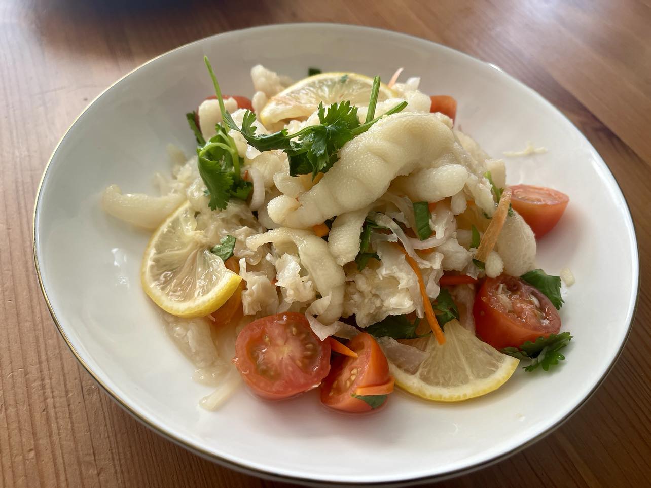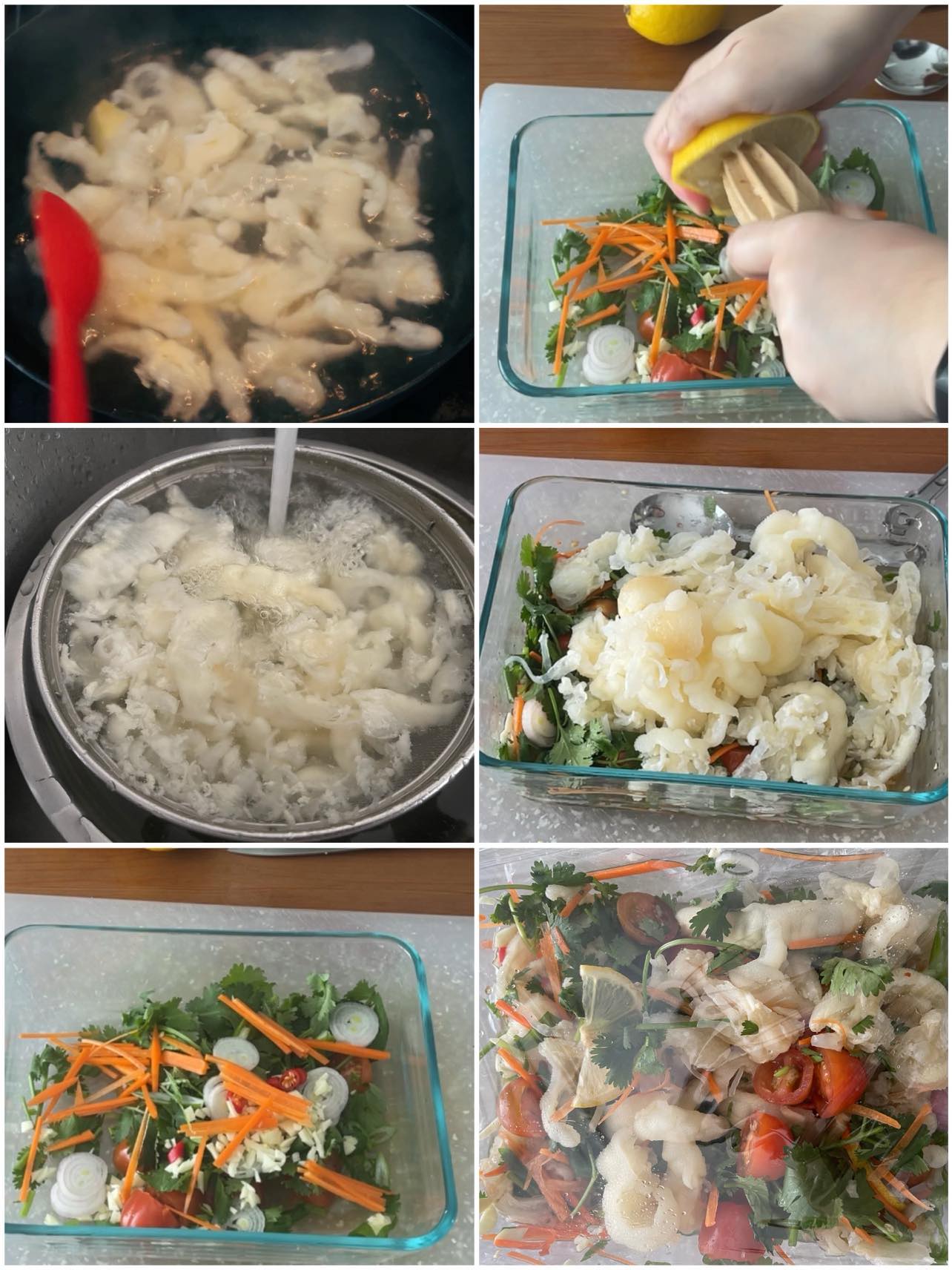 醬汁:檸檬汁1個/魚露2湯匙/米醋2湯匙/雞醬2湯匙/糖1茶匙/芫茜、乾蔥、辣椒、蒜蓉隨意切碎