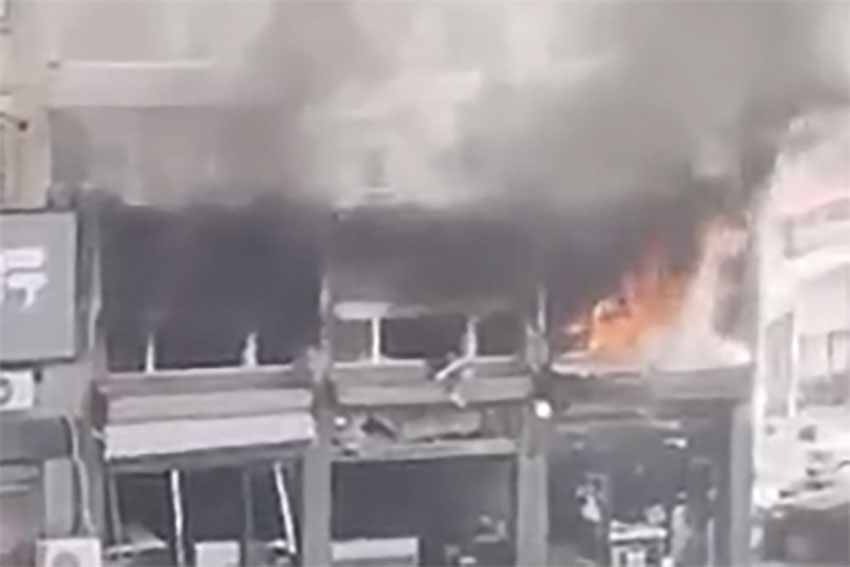 片段所見,火勢從二樓窗口冒出,滿佈濃煙,碎片散落一地。