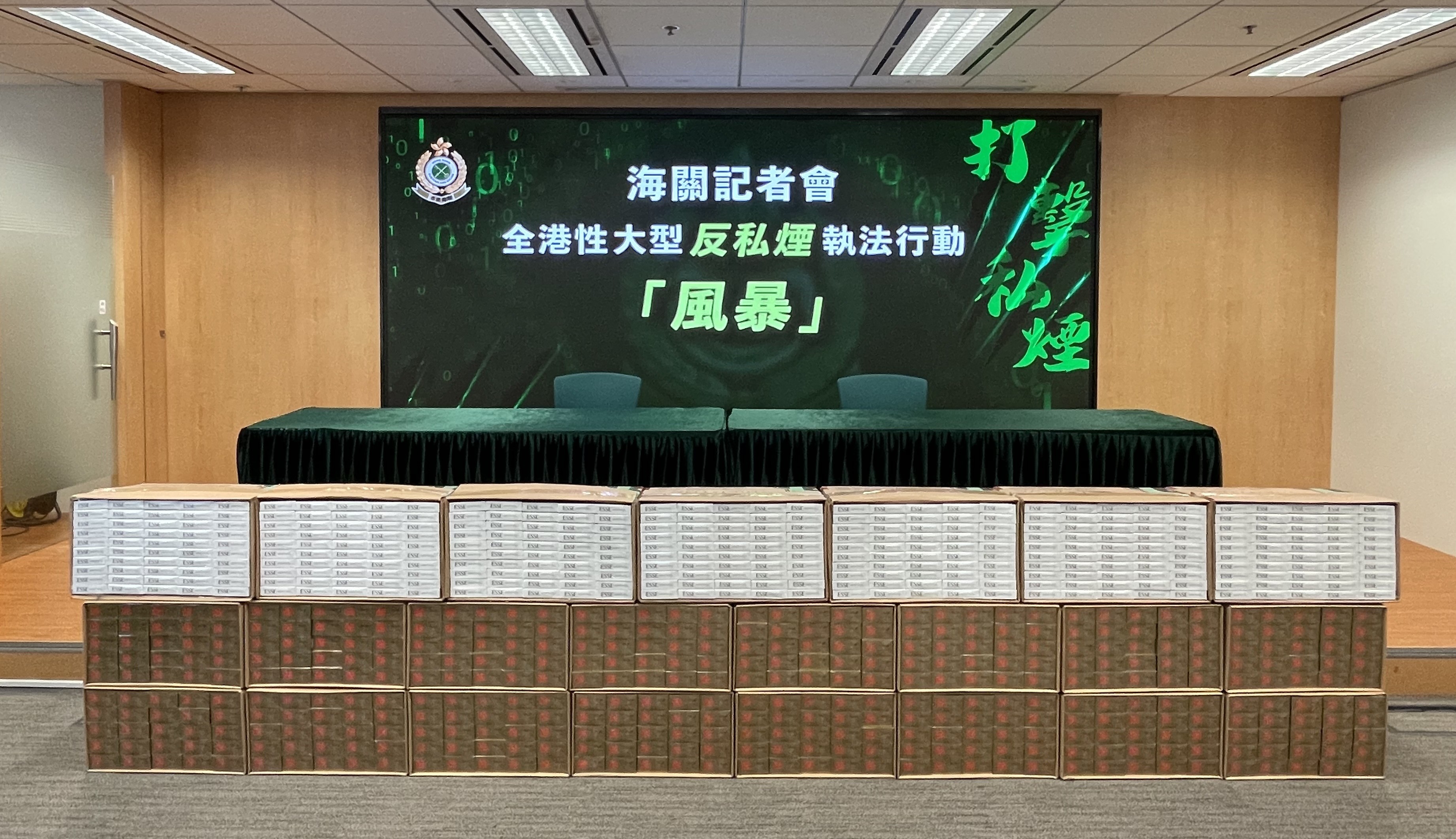 香港海關於2月19日起,展開代號「風暴」的全港大型反私煙特別行動,在各個管制站以及全港各區市內,從不同層面加強打擊私煙活動。截至3月14日,連同首階段的數字,海關共偵破1361宗相關案件,檢獲共約6100萬支懷疑私煙、約8340克雪茄及約540克製成煙草,估計市值共約2.7億元,應課稅值共約1.9億元。行動中,海關共拘捕1314人,年齡介乎17至89歲,並扣查9輛懷疑用作分銷私煙的車輛。