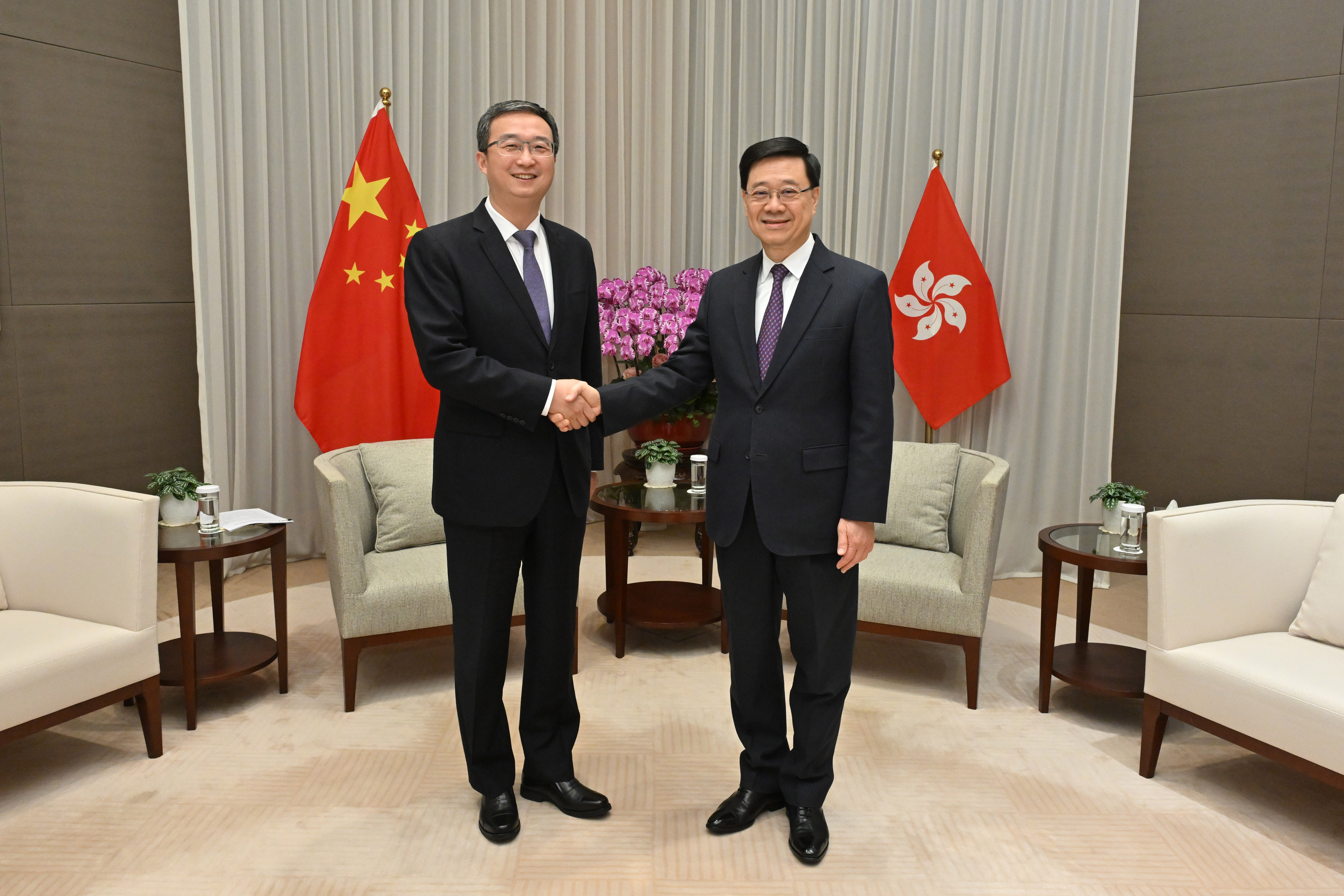 行政長官李家超今日(3月18日)與東莞市委書記韋皓會面,就深化香港和東莞市合作及推動粵港澳大灣區高質量發展交流意見。