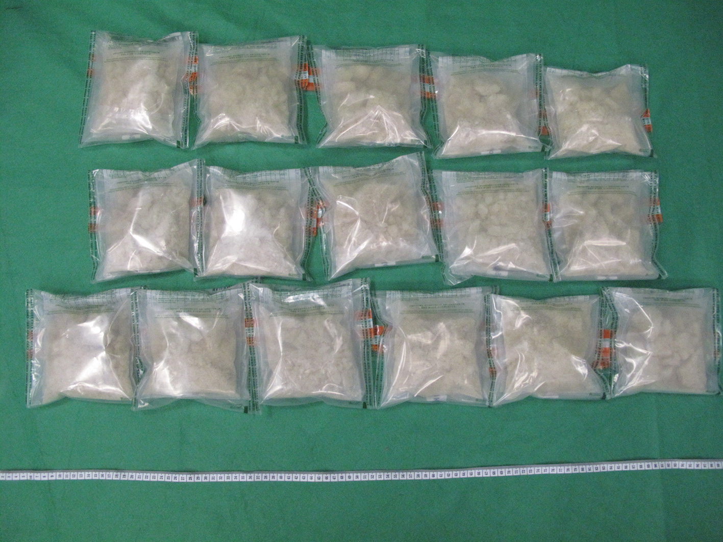 海關人員3月9日檢查一件從德國到港的空運郵包,在郵包內的16個食物包裝盒中檢獲該批懷疑3,4-亞甲二氧基甲基安非他明。跟進調查後,海關人員昨日(3月21日)在土瓜灣拘捕一名30歲懷疑涉案男子,並在其住所內檢獲少量懷疑冰毒及一批毒品吸食工具。