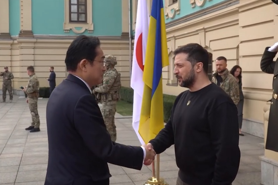 日本首相岸田文雄周二(3月21日)抵達烏克蘭首都基輔,與烏克蘭總統澤連斯基會談,是最後一位到訪當地的七國集團領袖。