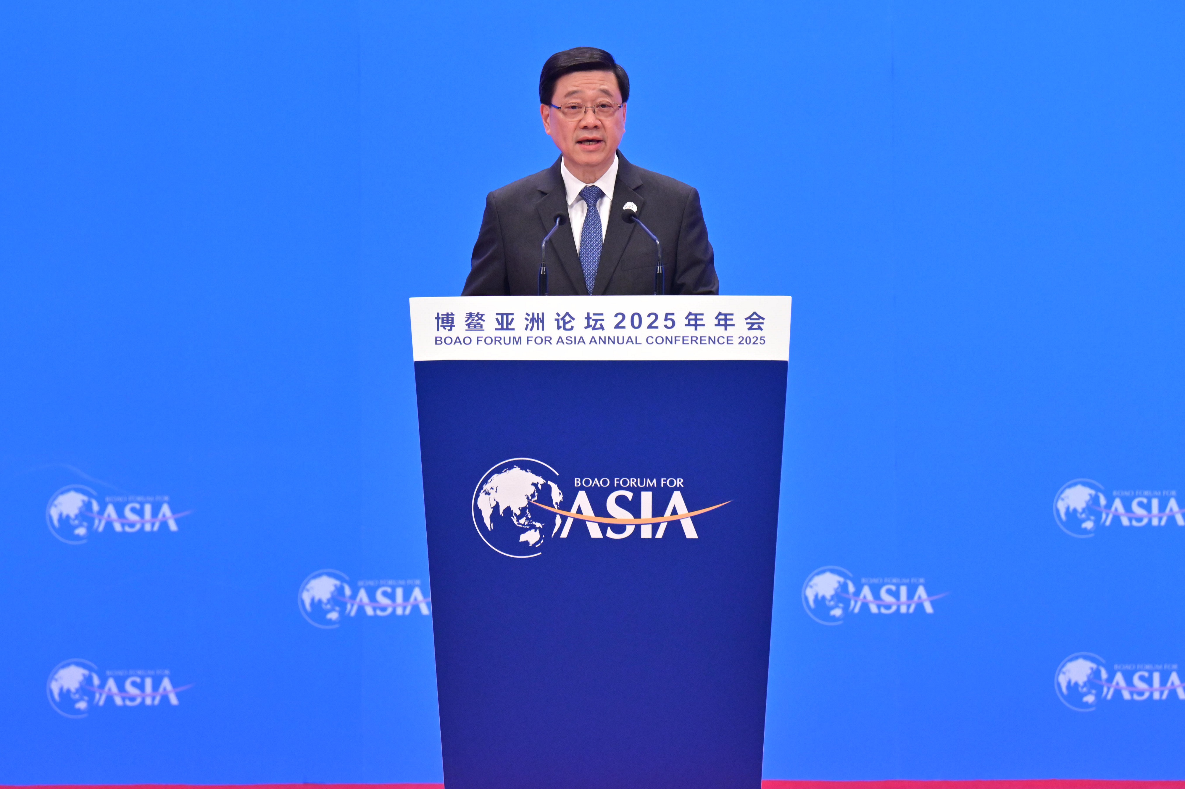 行政長官李家超今日(3月25日)抵達海南,出席博鰲亞洲論壇2025年年會全球自由貿易港發展論壇。