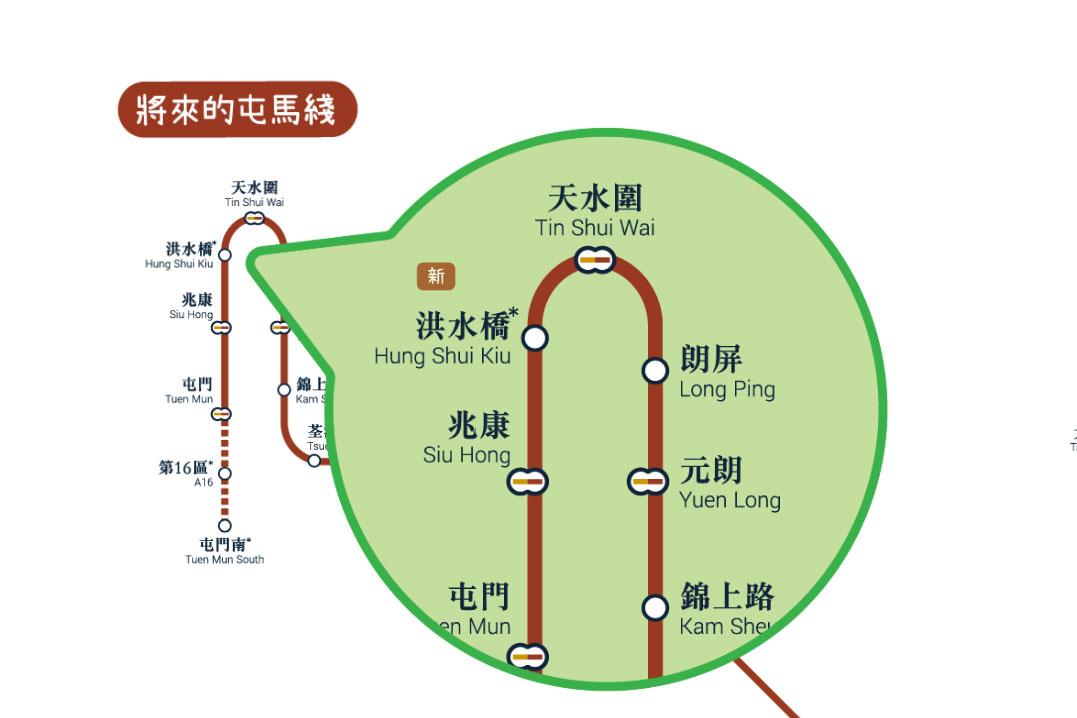 洪水橋站將成為屯馬線天水圍站和兆康站之間的一個中途站,主要服務未來位於北部都會區西面的洪水橋/厦村新發展區。