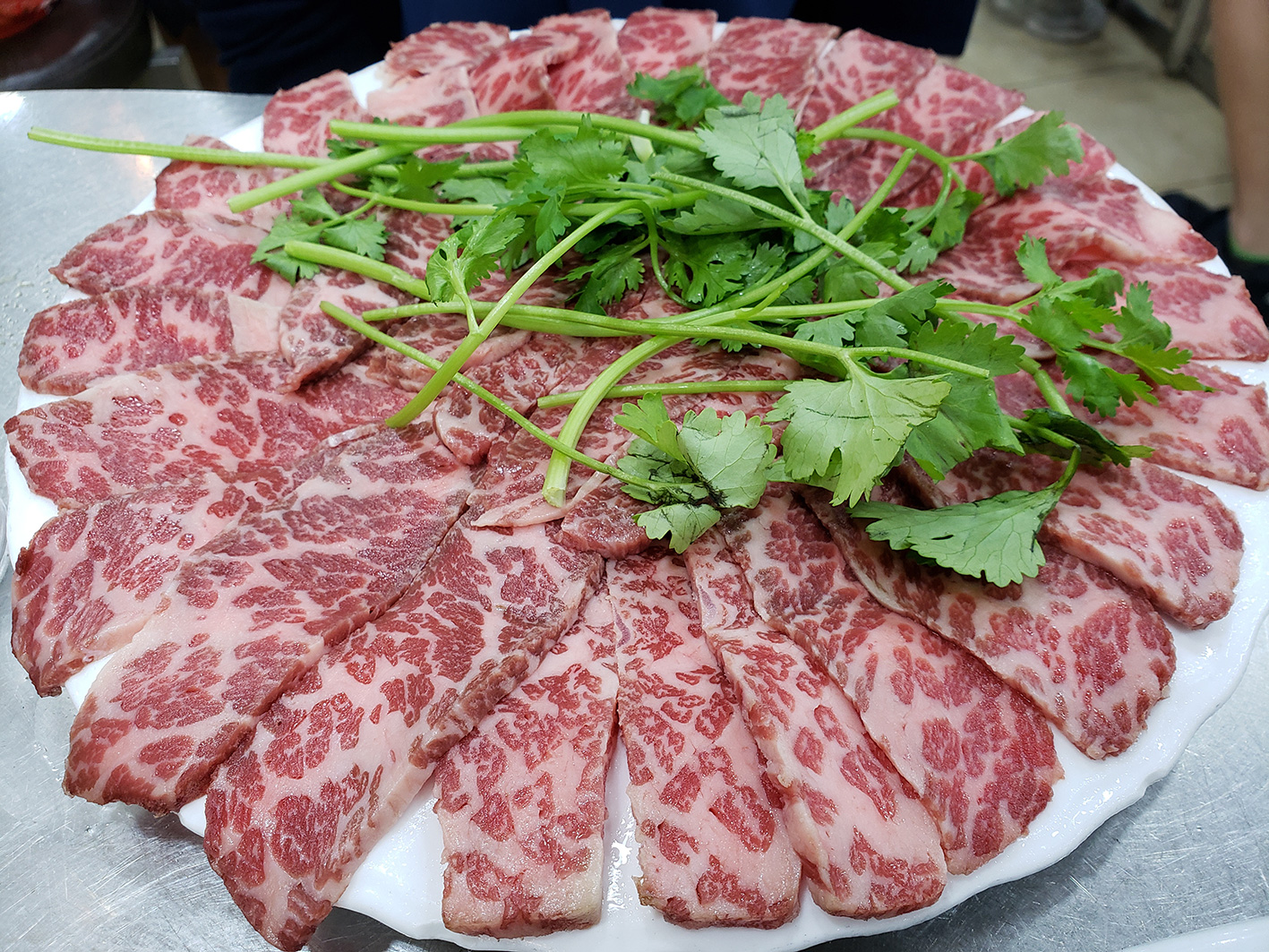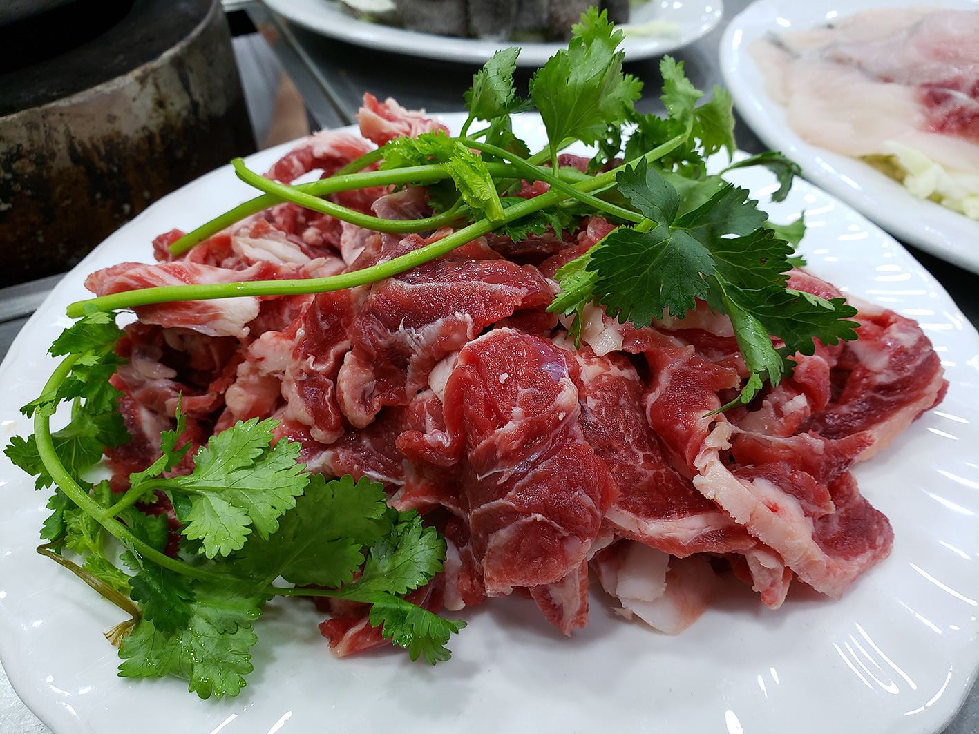 作為牛肉專家,店家有兩款推介,「星級牛肉」與「特級牛肉手切」。前者油花豐盛,入口油香十足,肉質軟嫩。坊間不少台式火鍋店所供應的高級安格斯牛小排,正與此「星級牛肉」極為相似。至於「特級牛肉手切」,則類似街市鮮牛肉枱供應的牛頸脊,油脂較少而肉味較濃,入口肉質爽脆,又不會嚼至滿口肉渣。