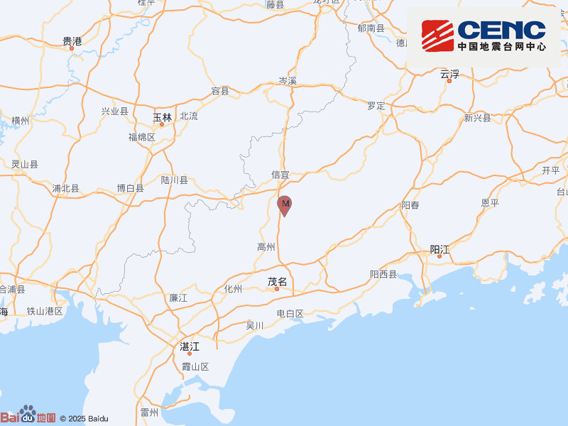 中國地震台網公布,今日(3月30日)晚上8時46分廣東茂名市高州市發生黎克特制3.0級地震。