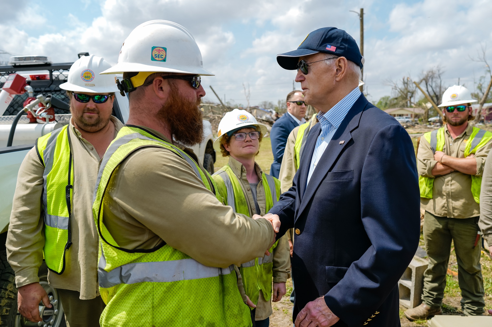 與此同時,總統拜登前往密西西比州,到受龍捲風吹襲地區視察災情,拒絕回應特朗普被起訴。