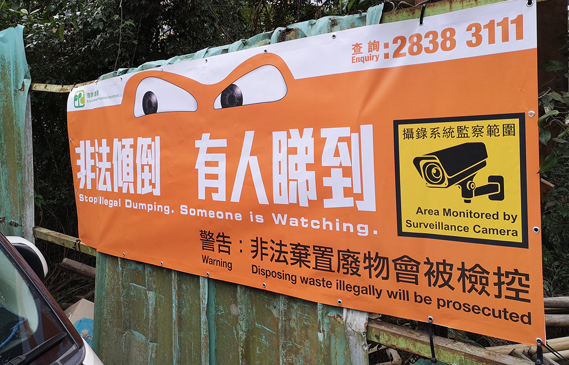 環保署發言人表示,署方已在各區多處安裝監察攝錄系統,並掛放「非法傾倒,有人睇到」橫幅,加強打擊違例棄置廢物情況。