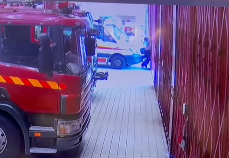 事發於今早(4月2日)近8時半,現場為港珠澳大橋消防局暨救護站,消防處回覆傳媒查詢時指,一度被夾的救護員膝部擦傷,被送往瑪嘉烈醫院治理。