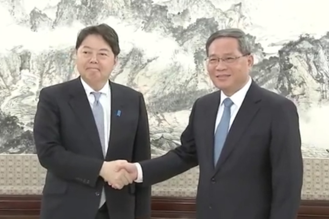 李強指出,歷史、台灣等重大原則問題事關兩國關係政治基礎,應該以誠相待、以信相交、妥善處之。中日作為重要經貿夥伴,在實現各自發展方面相互促進、彼此成就,利益深度融合。雙方應該也完全可以做大經貿合作的蛋糕,在數字經濟、綠色發展、財政金融、醫療養老等方面加強合作,實現更高水平的互利共贏。歡迎日本繼續深化對華合作,共享中國經濟發展紅利,續寫中日互利合作新篇章。亞洲是中日兩國安身立命的共同家園。希望兩國一道維護自由貿易,踐行真正的多邊主義,積極推進區域一體化進程,維護產業鏈供應鏈穩定暢通,共同減少不確定性、增添穩定性,為地區和世界發展作出應有貢獻。
