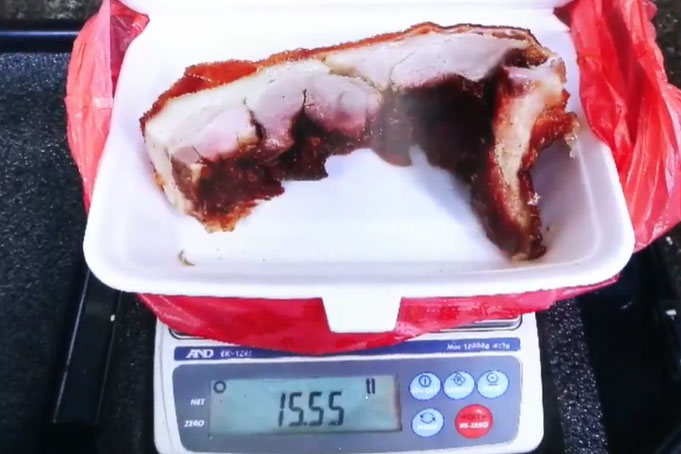 行動中,海關人員於香港各區共巡查67間燒臘店,並發現當中7間所出售的燒味食品實際重量較宣稱的輕7.5%至20%不等。