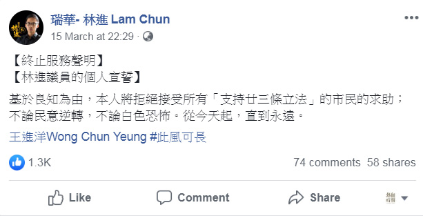 民政事務總署今日(4月4日)表示,近日收到大量電郵和信件,投訴元朗區議員林進公開表示拒絕接受所有「支持23條立法」的市民的求助。