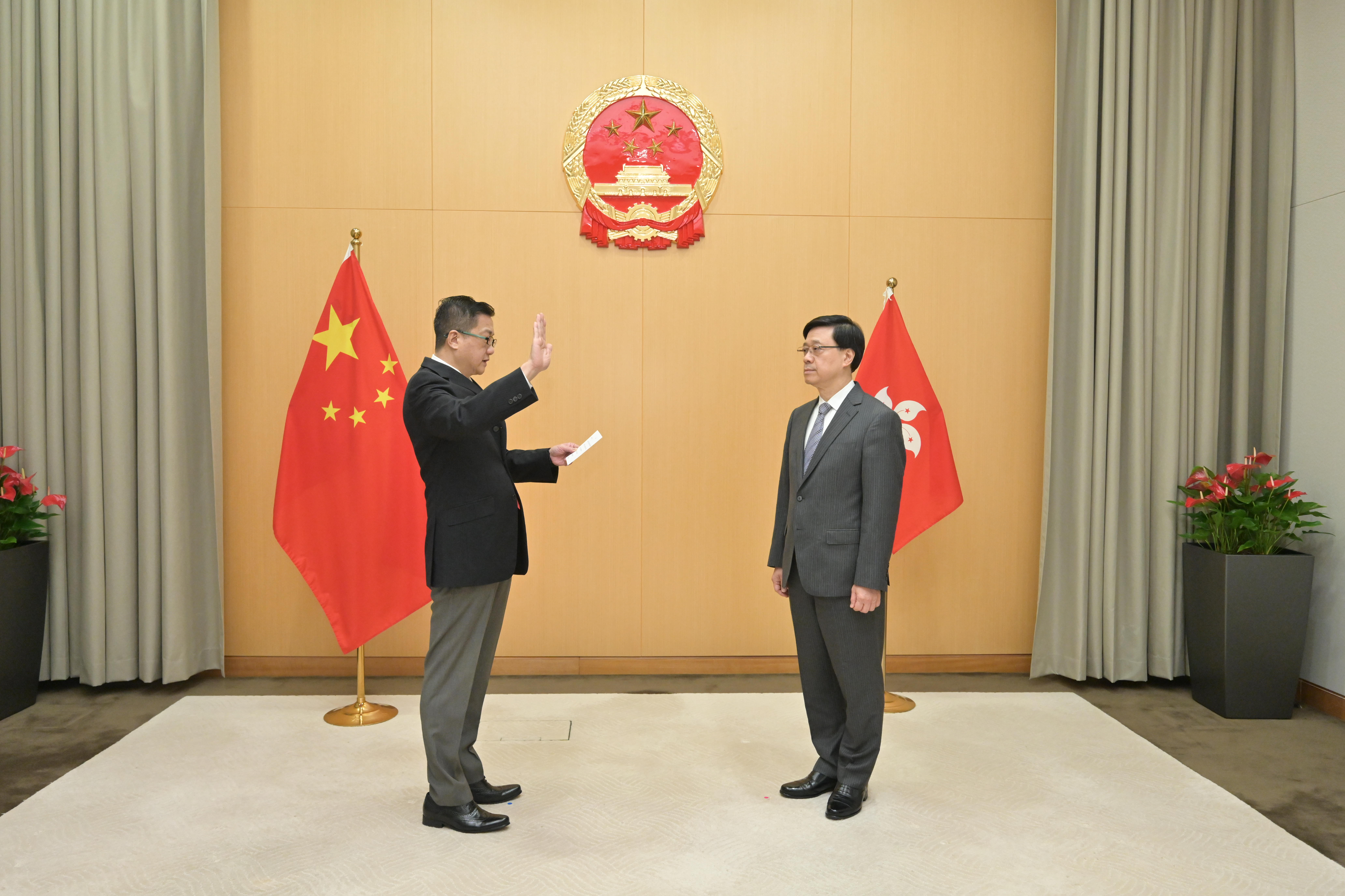 申訴專員在行政長官李家超監誓下作出誓言,宣誓擁護《中華人民共和國香港特別行政區基本法》,效忠中華人民共和國香港特別行政區,盡忠職守,遵守法律,廉潔奉公,為香港特別行政區服務。