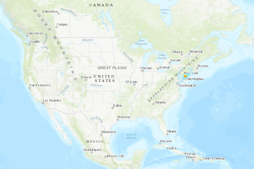 地震發生於當地時間周五(4月5日)早上10時23分,震央位於北緯40.683度,西經74.753度附近。