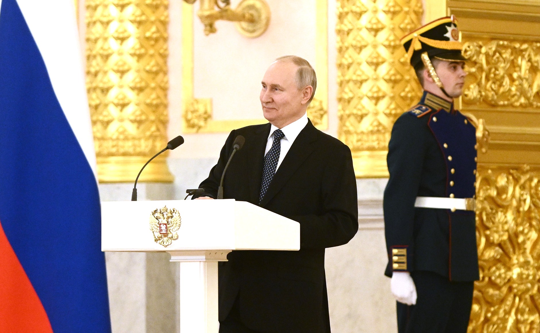 普京周三(4月5日)在克里姆林宮,接受17名外國新任大使遞交國書。他在儀式上演說,特別向在場的美國新任大使特雷西表示,美國使用外交手段,包括在2014年支持在烏克蘭的「顏色革命」,最終導致目前的烏克蘭危機。