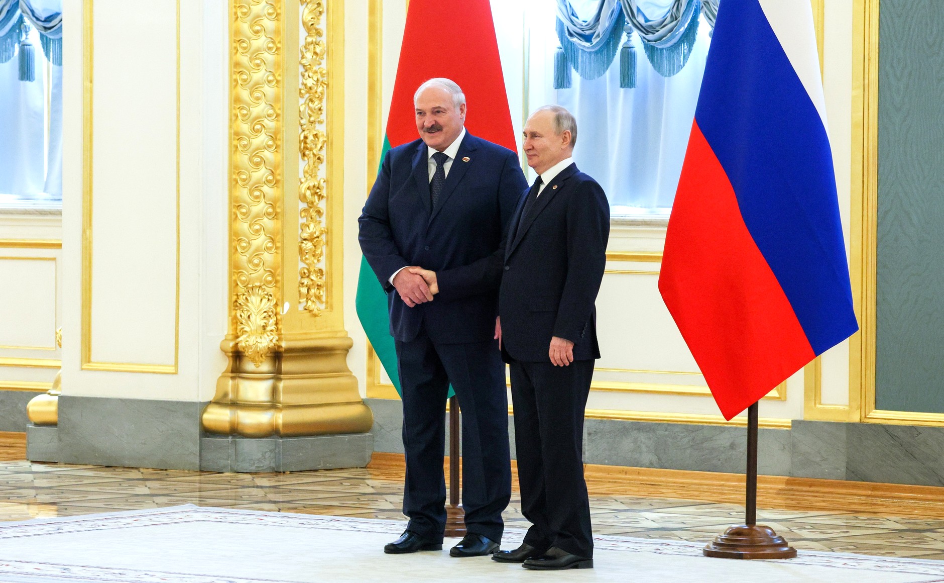 普京表示,俄羅斯和白俄正在並將繼續加強在國防和安全領域合作,並擴大軍事技術領域合作,符合國家和人民的根本利益,在當今複雜國際形勢下至關重要。