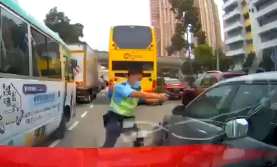 事發於今晨10時許,新界南總區警員於吐露港公路以車牌識別系統巡查,發現一輛私家車行車證過期,於是指示司機停車,惟對方未有理會,警員開車上前追截。