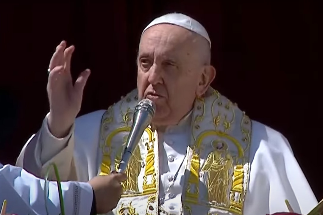 方濟各向聖伯多祿廣場的約10萬信眾演說,提及俄烏戰事,為烏克蘭人民祈求和平,並祈求將復活節之光照亮俄羅斯人民,他願主安慰受傷和失去親人的人,讓戰俘平安回到家園。