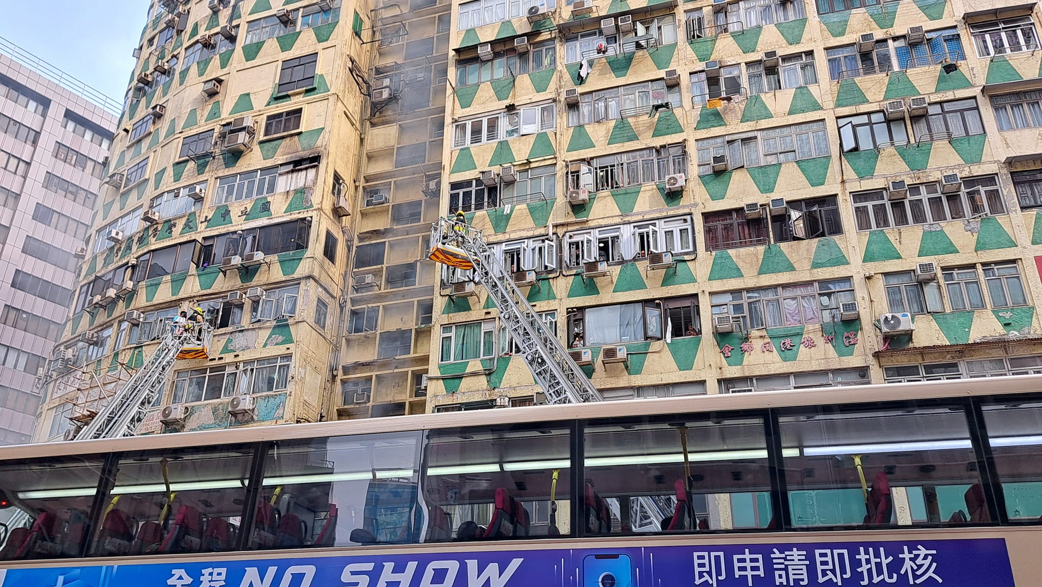 涉事大廈樓齡為60年。屋宇署於2018年就樓宇的公用部分向大廈業主立案法團發出強制驗樓法定通知。法團於2019年十月曾委任註冊檢驗人員,於2023年4月通知屋宇署已委任了另一名註冊檢驗人員,該註冊檢驗人員並於5月向屋宇署提交訂明檢驗報告,建議需進行修葺工程,當中包括更換防火門、提供逃生樓梯防護門廊及根據《消防安全(建築物)條例》(第572章)進行改善等。涉事大廈為較早前行動策略下已委聘註冊檢驗人員的約1800幢樓宇之一,而有關註冊檢驗人員亦有向屋宇署交待具體進展。現時有關註冊檢驗人員正準備修葺工程的招標文件,並與法團商討承建商招標事宜。屋宇署會繼續與法團跟進,敦促其盡快展開維修工程,並在有需要時考慮採取執法行動。