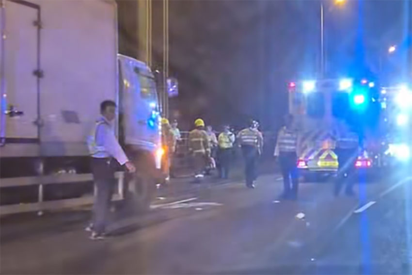 警方昨日晚上10時09分接獲報案,指一名35歲男貨車司機駕駛一輛貨車沿青嶼幹線往東涌方向行駛時,據報撞向一輛因爆呔停泊上址的私家車。