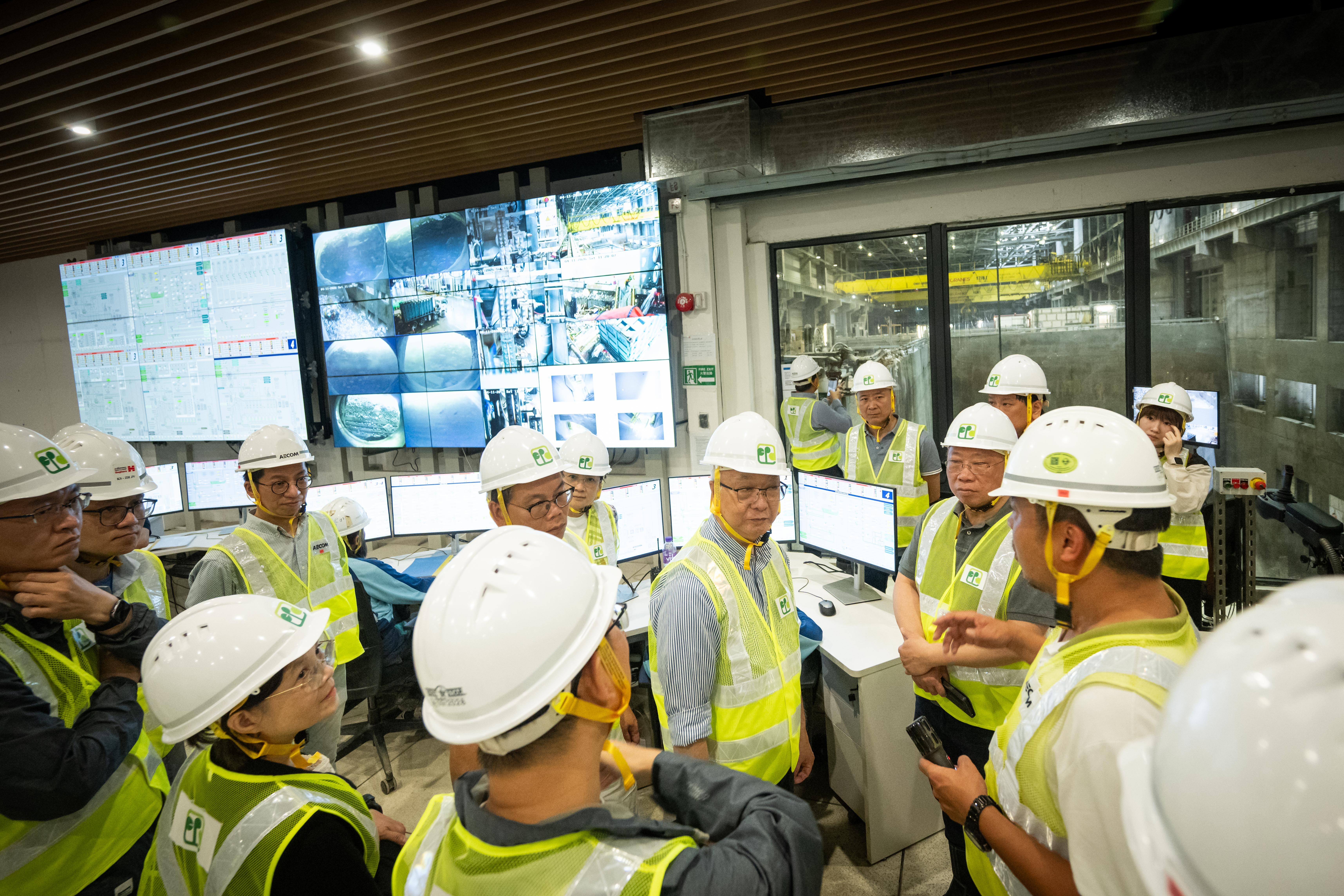 一行人亦聽取了工程團隊匯報I·PARK1的試運情況。I·PARK1採用的先進高溫焚化技術,能有效控制煙氣排放,分解包括二噁英在內的有機化合物。焚燒處理過程中產生的熱能將用作發電,除供設施日常運作外,每年可輸出約4.8億度電力至電網,足夠供10萬戶家庭使用一年,充分展現「轉廢為能」的效益。