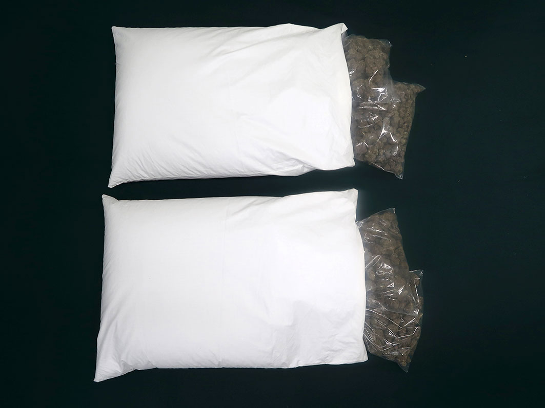 根據風險評估,海關人員揀選及查驗一件從加拿大抵港的空運貨物,報稱載有枕頭、零食和衣服。經檢查後,海關人員發現該批懷疑大麻花收藏於兩個枕頭內。