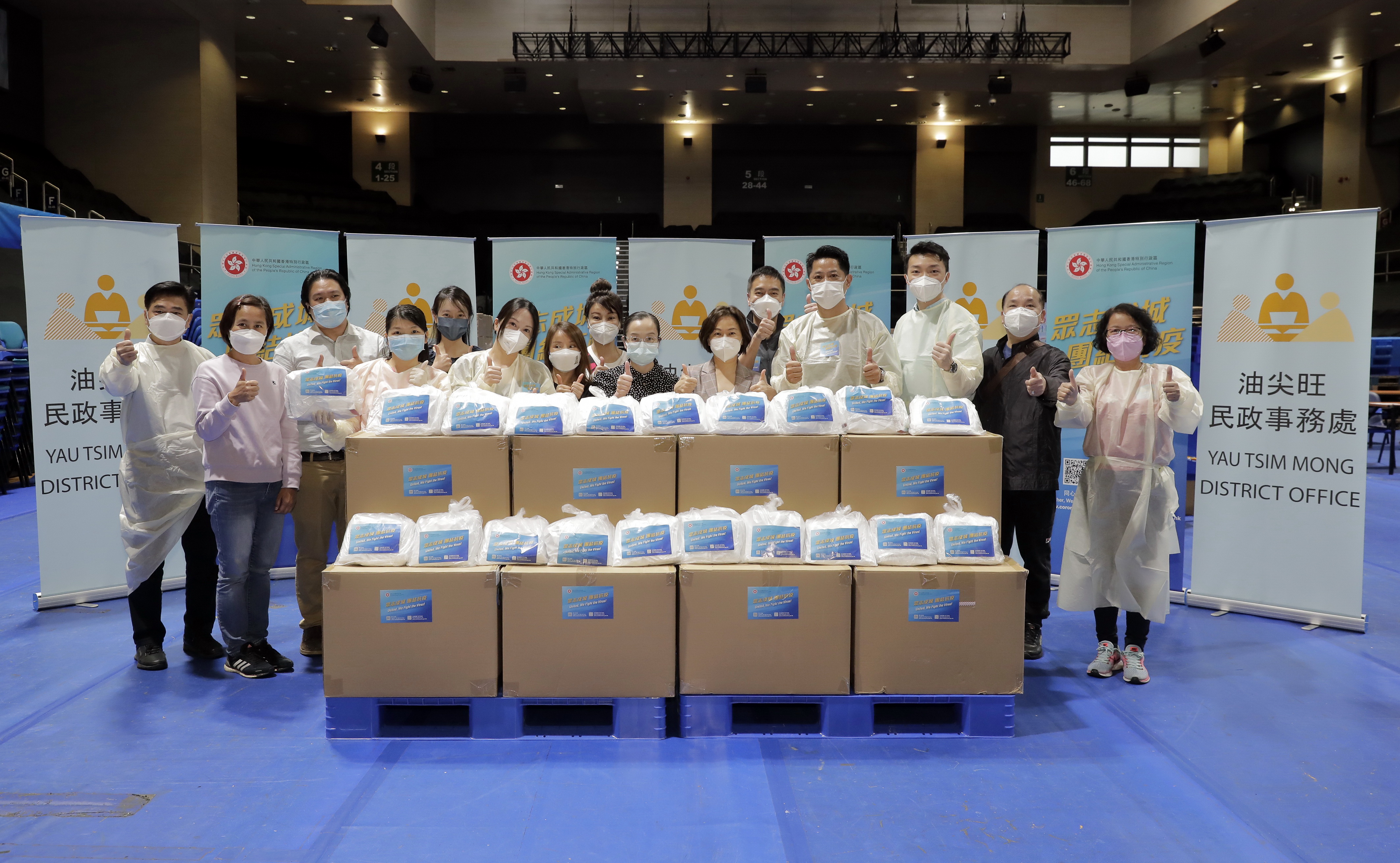 署理民政事務局局長陳積志感謝一眾立法會議員、「全港社區抗疫連線」、18區社區抗疫連線、香港義工聯盟和其他義工組織,以及超過350個地區組織及非政府機構、同鄉會、善團、制服團體、青年組織、宗教團體及少數族裔服務機構的全力支援,亦感謝學校及其他機構借出場地配合相關工作。