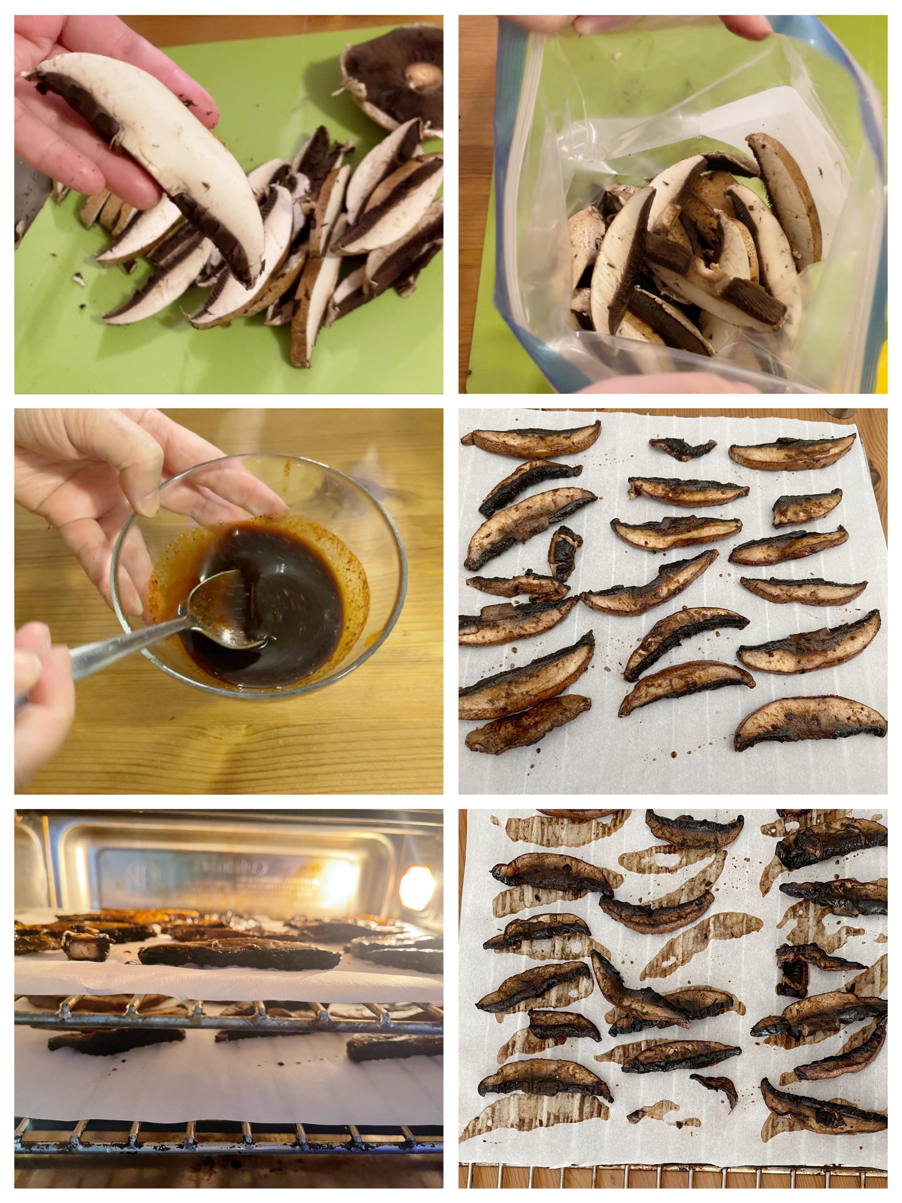 現在流行健康小食,你們食過美式的肉乾(jerky)嗎?朋友送了一包素肉乾給我,是用大菇菇(Portobello/Portabella mushrooms)做的,味道很好所以很想試做,材料很簡單隨意,製作也很容易,需要一個小小焗爐就可以,做出來的效果很像現成的一樣,很奇妙。