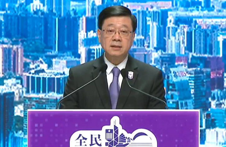 李家超在致辭時表示,他會領導特區,包括行政、立法及司法機關,依法有效防範、制止和懲治危害國安的行為和活動,堅決落實6項重任,包括堅持中央政府的根本責任和特區的憲制責任相統一;第二是堅持把特區的管治權牢牢掌握在愛國者手中;第三是堅持法治,保障人權;第四,在推動發展時絕不能犧牲安全;第五,在高水平安全保障下推進高水平開放;第六是完善公共安全治理體系。