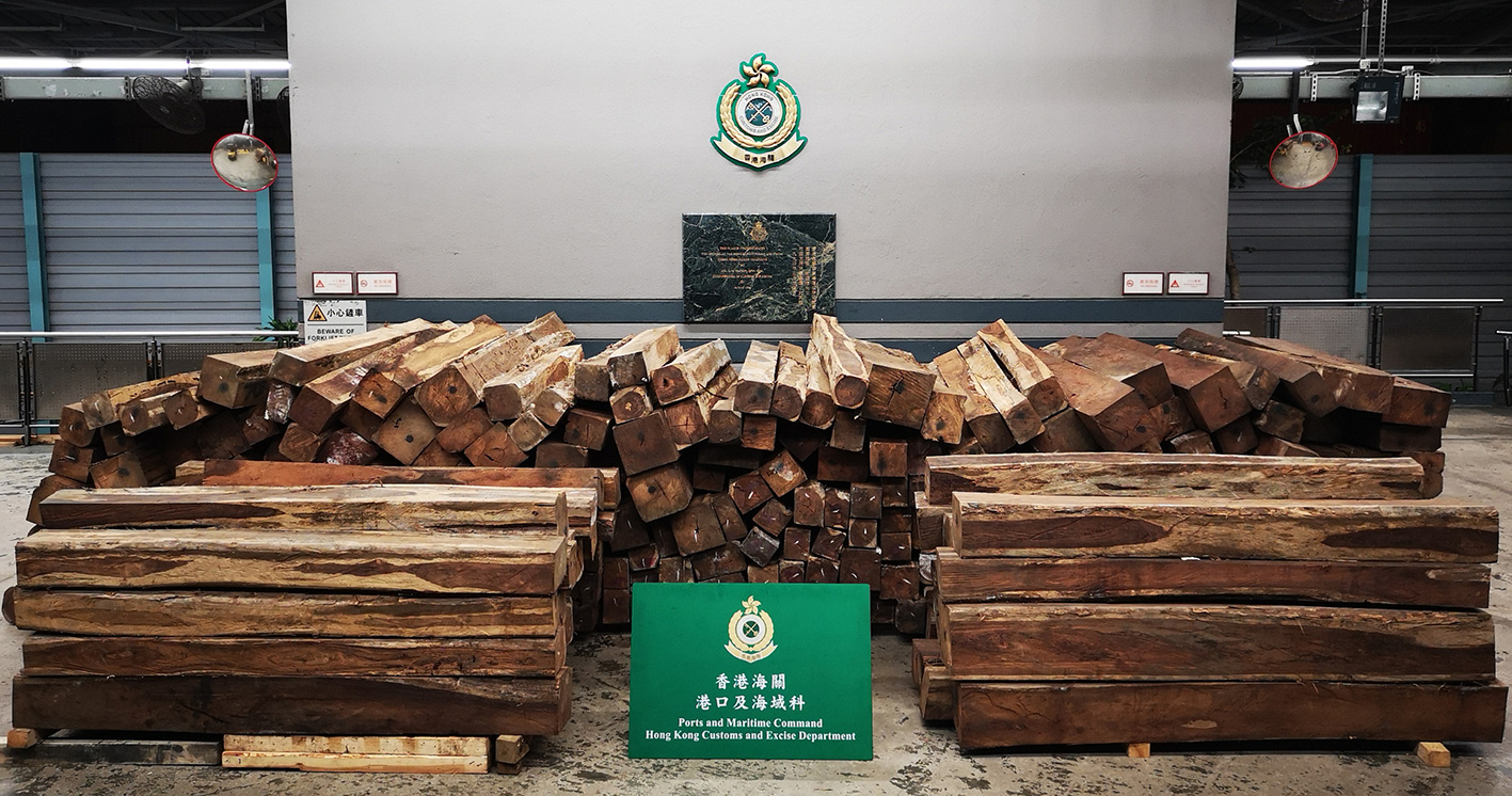 香港海關昨日(4月16日)在葵涌海關大樓驗貨場兩個貨櫃內,檢獲約54200公斤懷疑黃檀屬木材,估計市值約220萬元。
